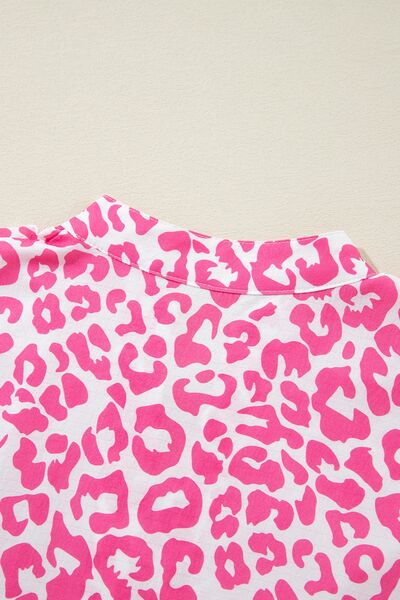 Leopard Notched Long Sleeve Shirt Dress