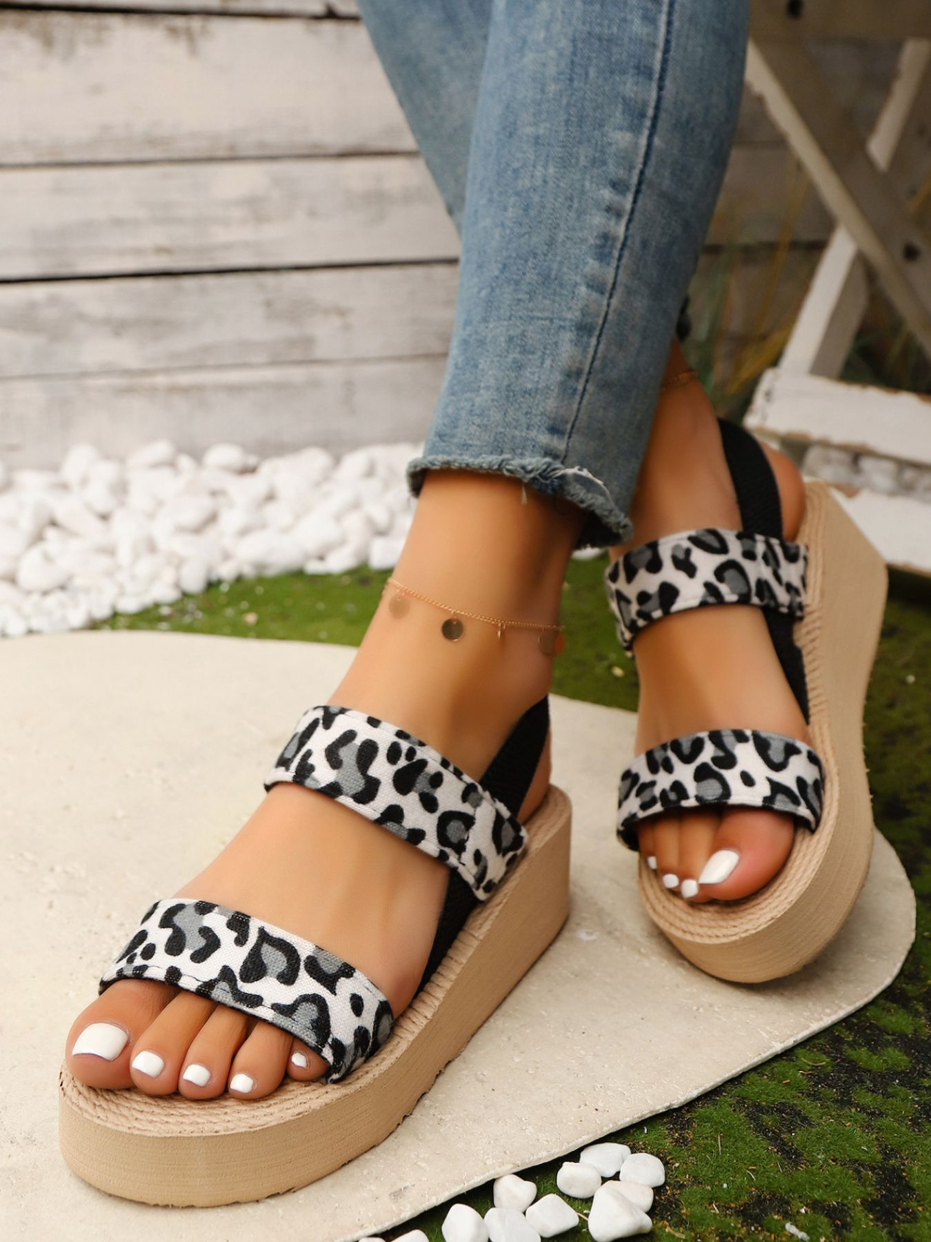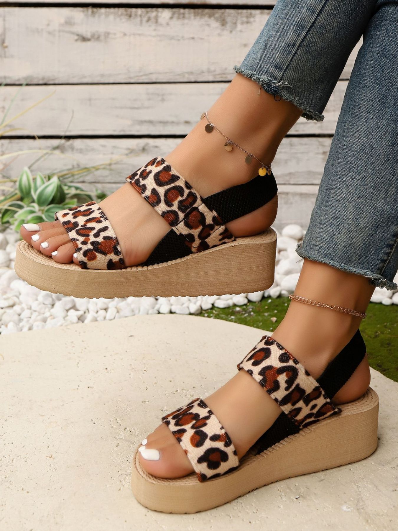 Leopard Open Toe Wedge Sandals