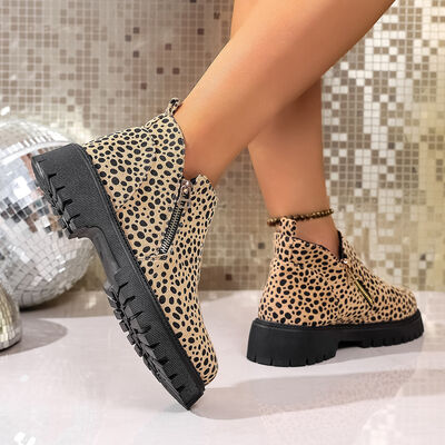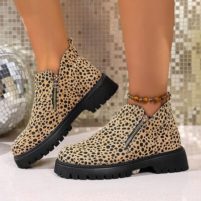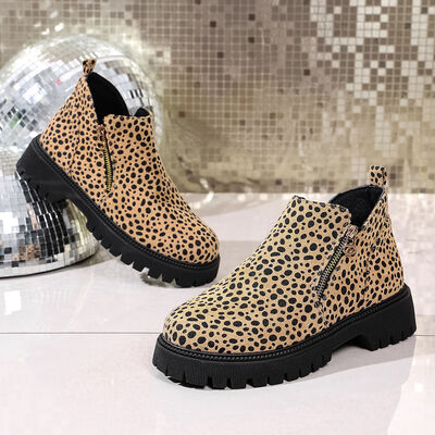 Leopard Platform Side Zip Boots