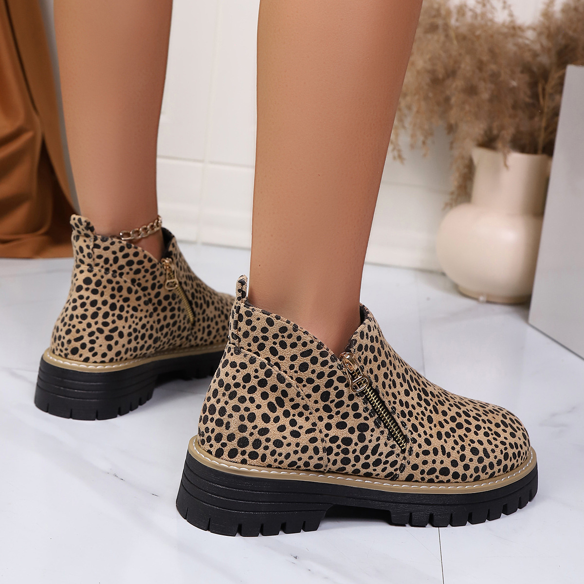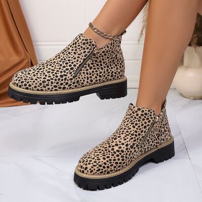Leopard Print Ankle Boots with Zipper