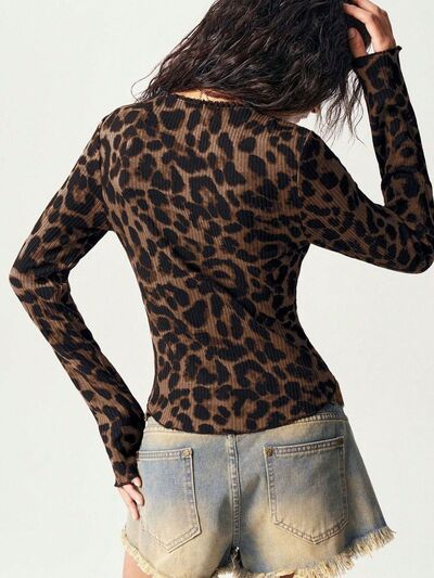 Leopard Print Button-Down Top