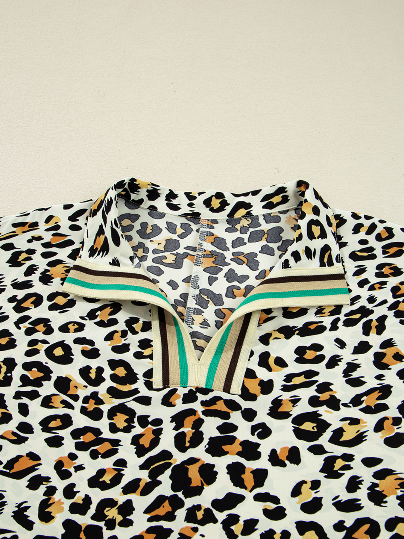 Leopard Print Contrast Striped V Neck Blouse
