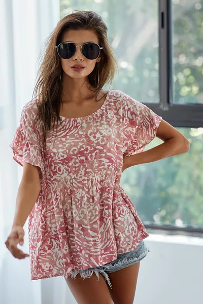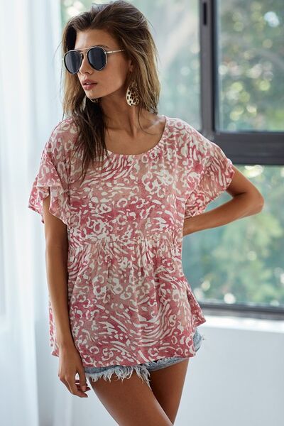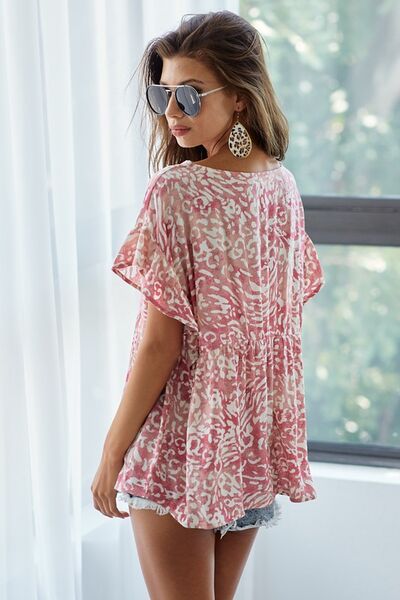 Leopard Print Gauze Woven Flutter Sleeve Blouse