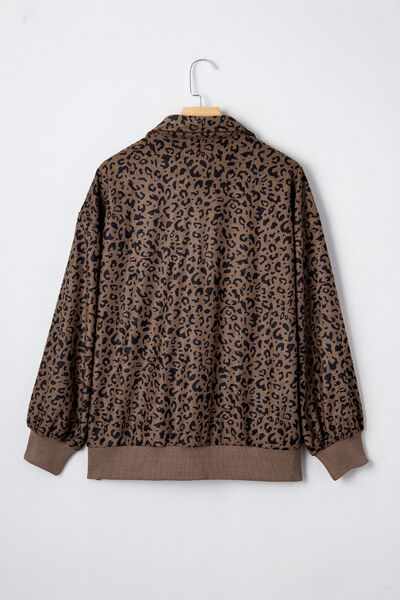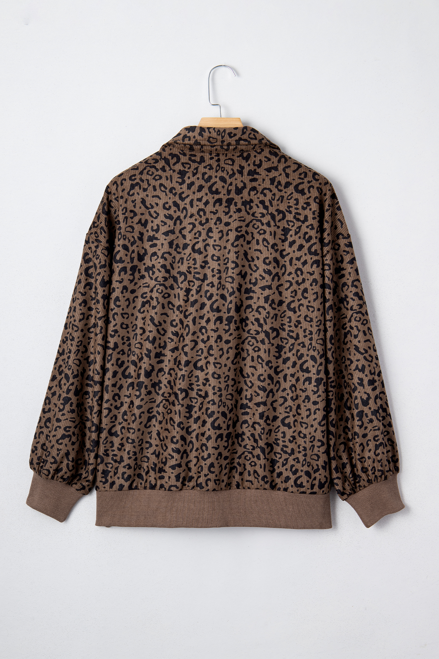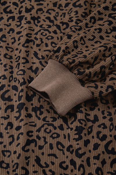 Leopard Print Quarter Zip Corduroy Sweatshirt