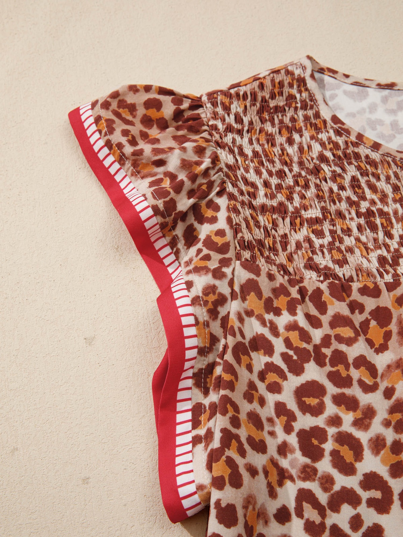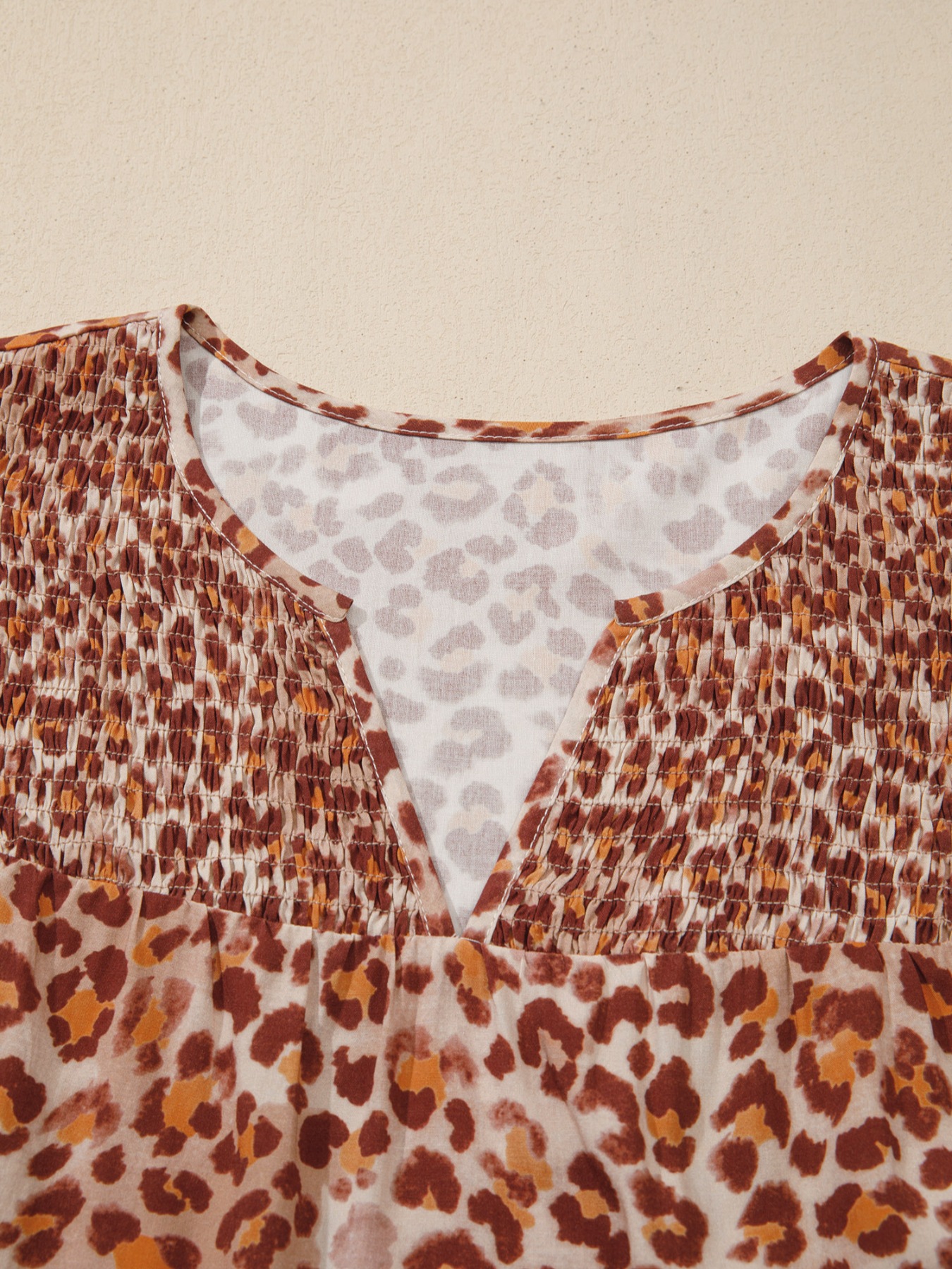 Leopard Print Smocked Notched Blouse