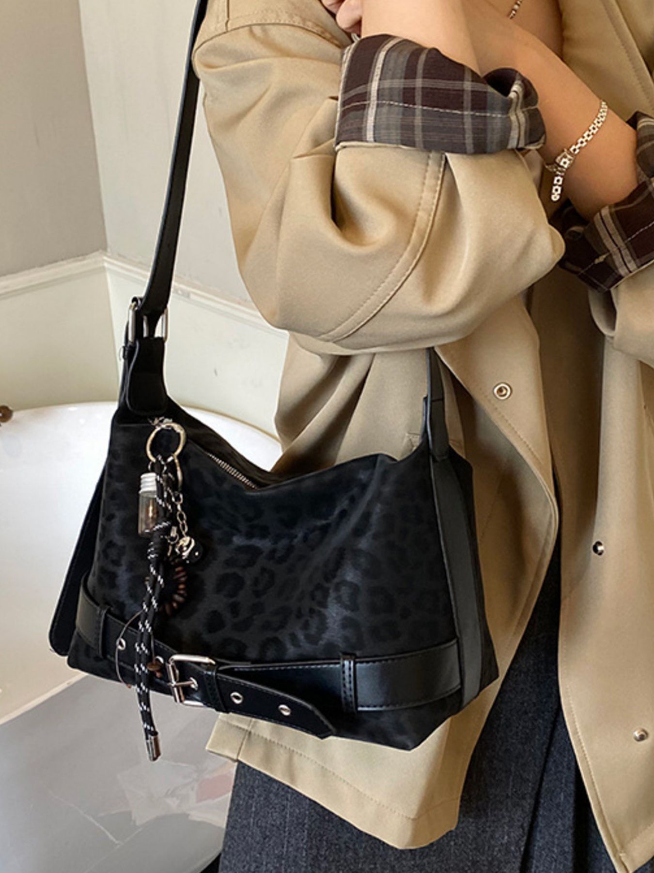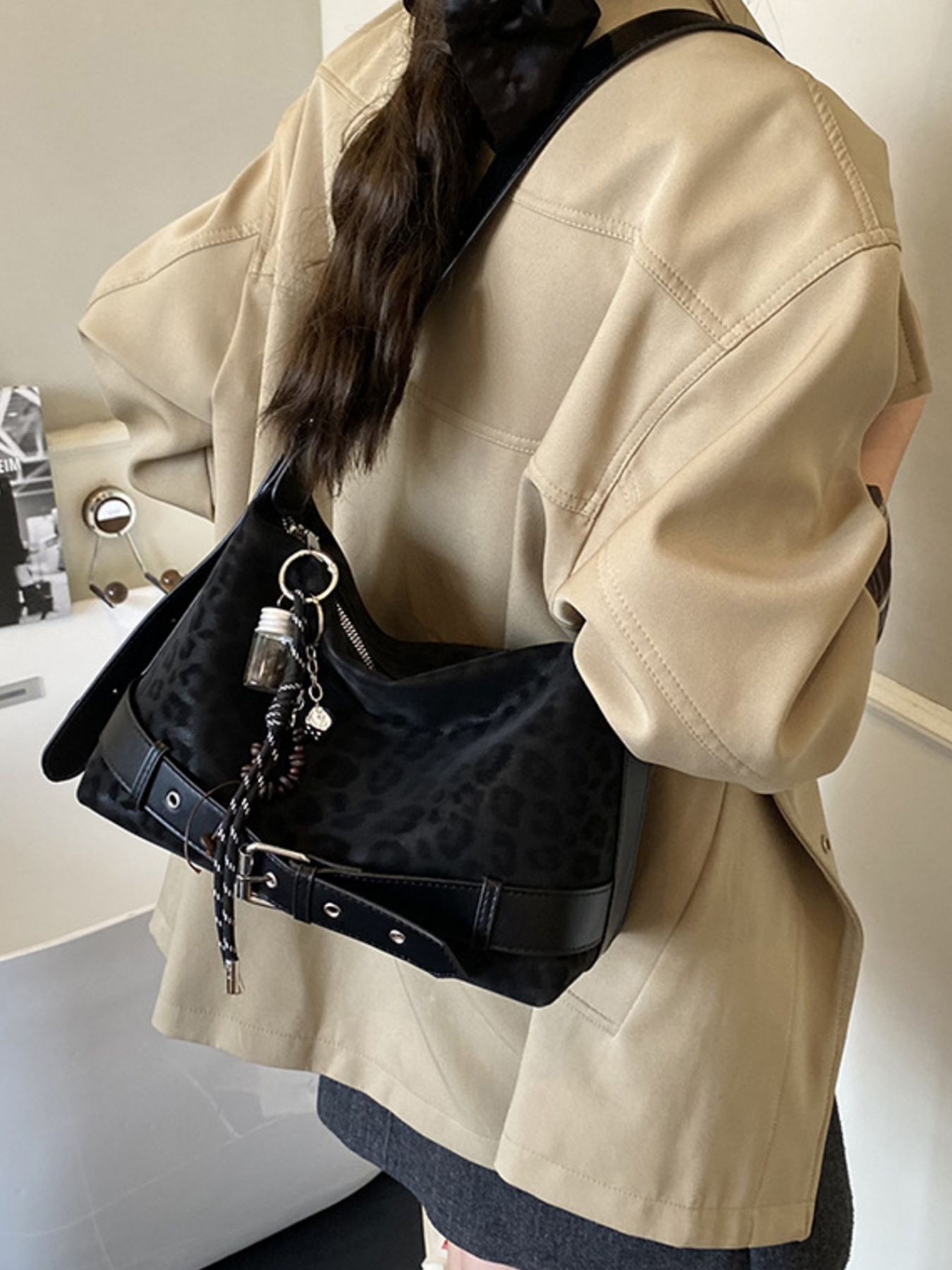 Leopard Print Suede Crossbody Bag