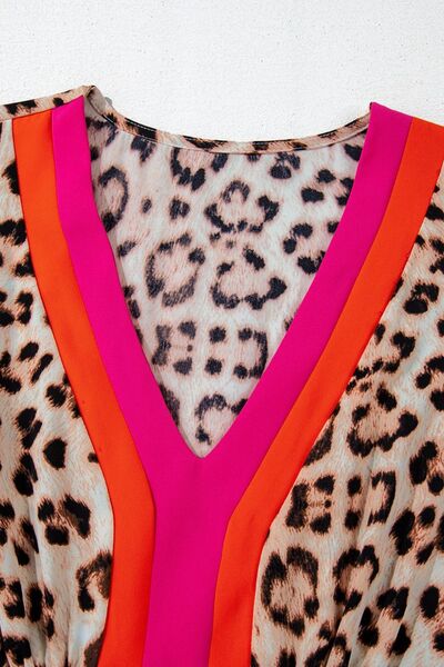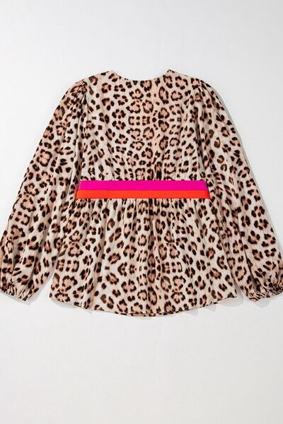 Leopard Print V-Neck Blouse with Contrast Trim