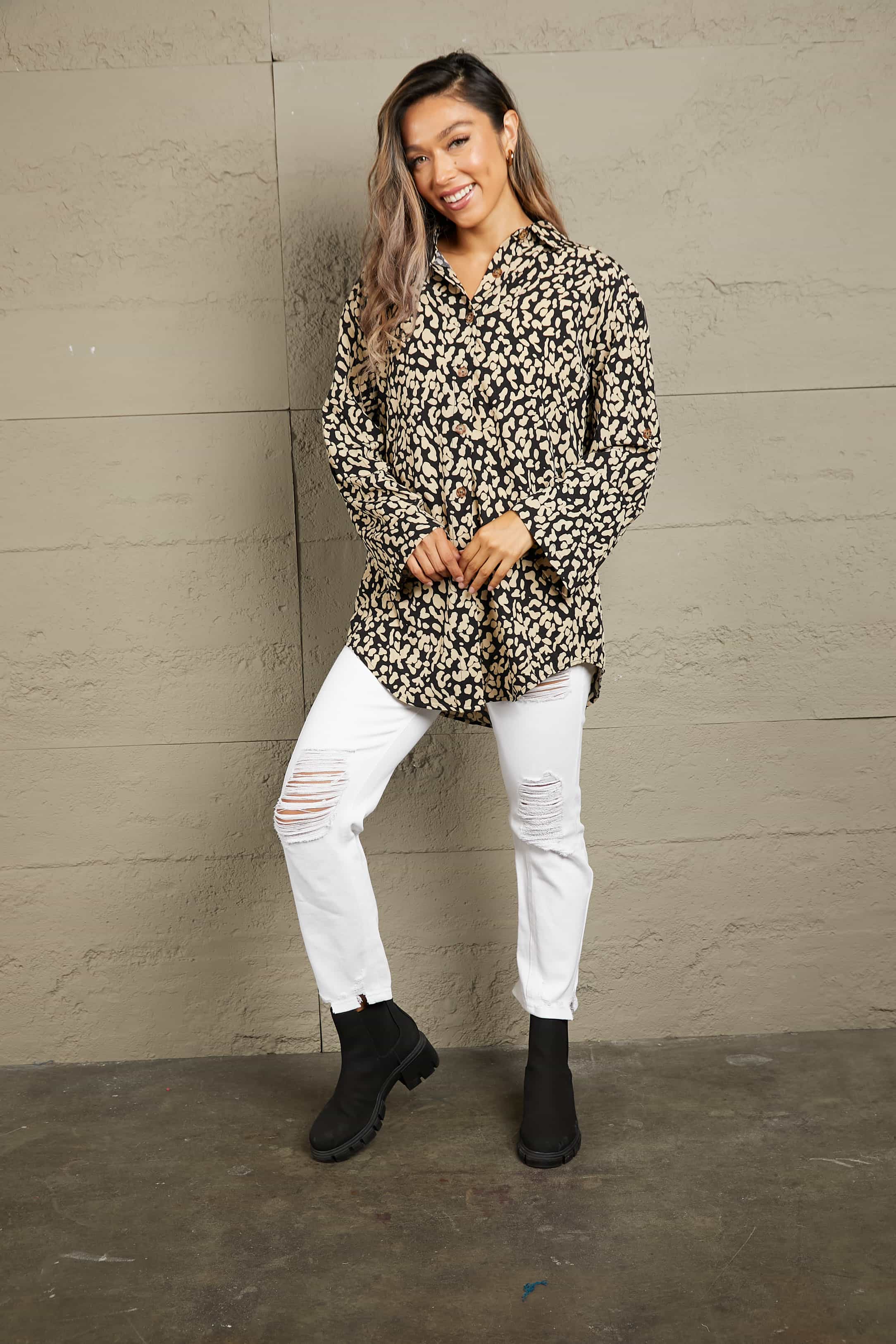 Leopard Roll-Tap Sleeve Shirt
