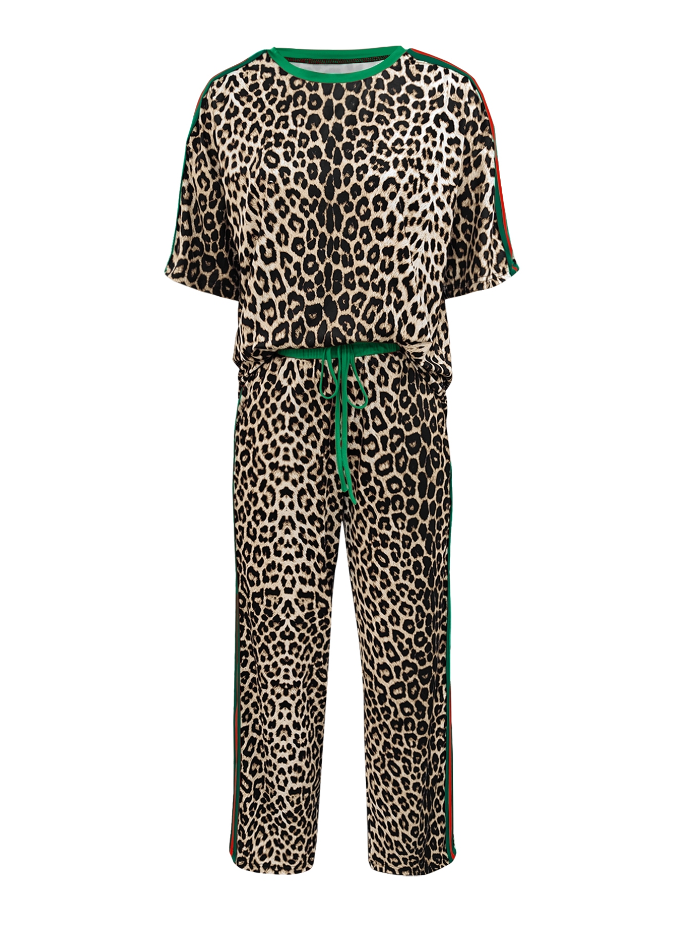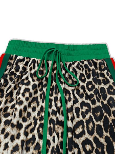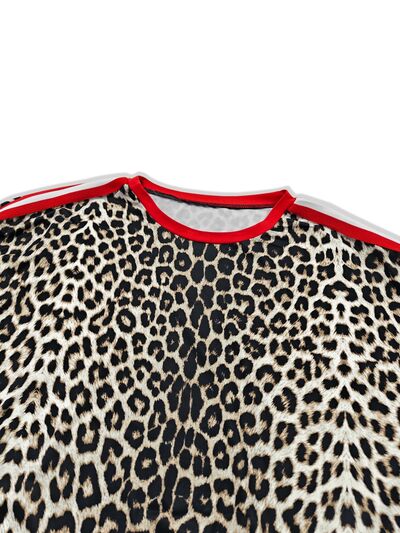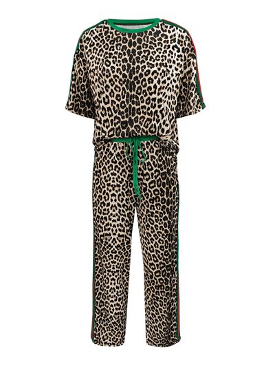 Leopard Round Neck Top and Pants Two-Piece Set