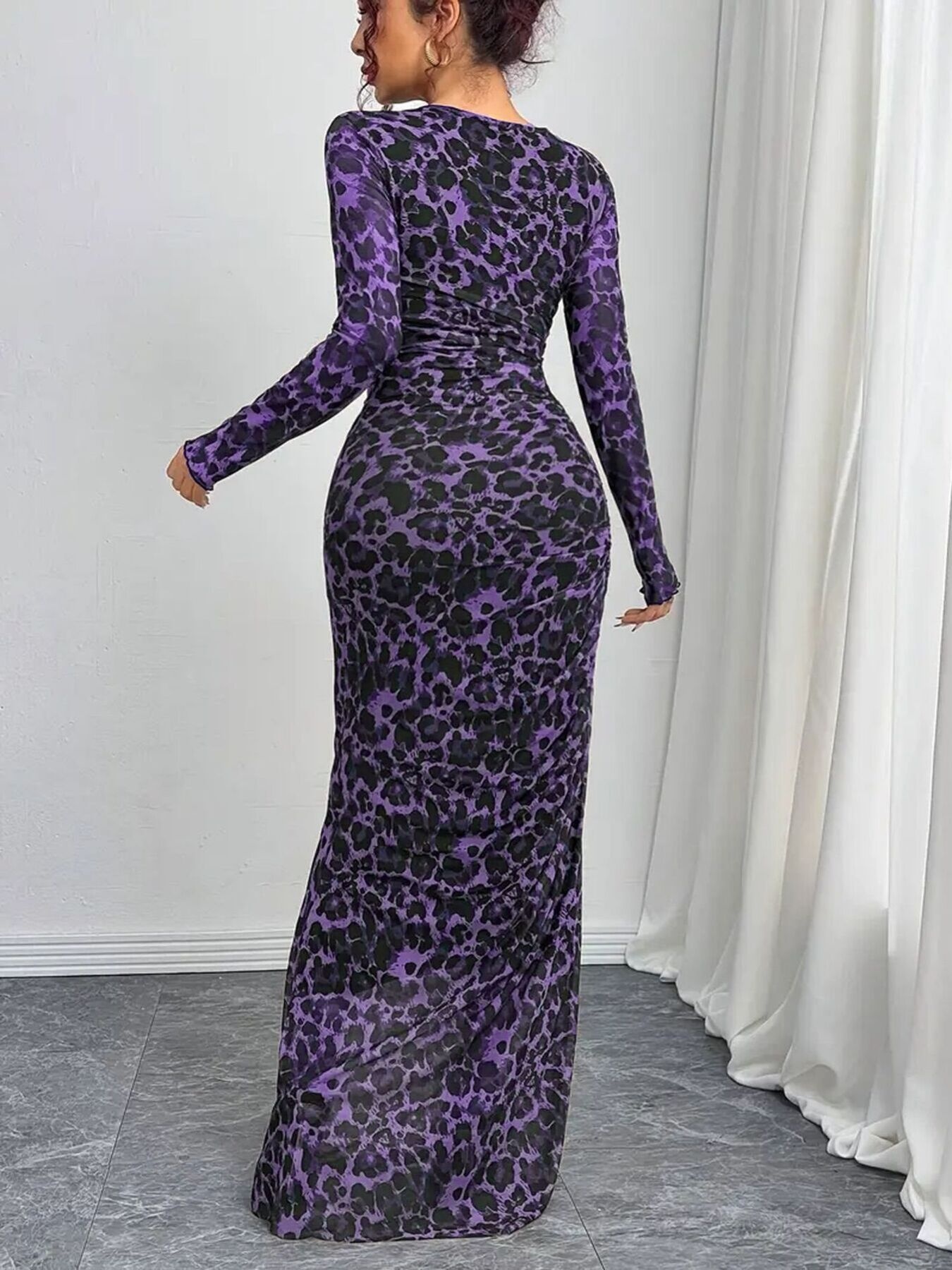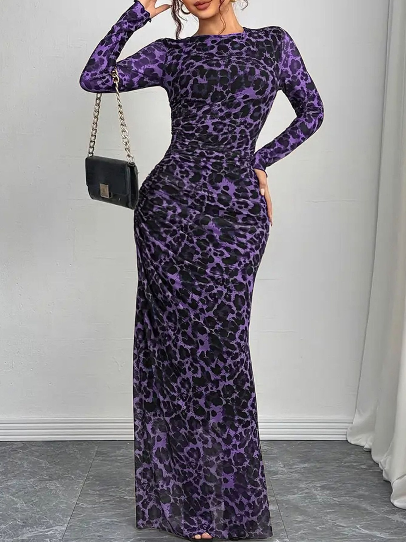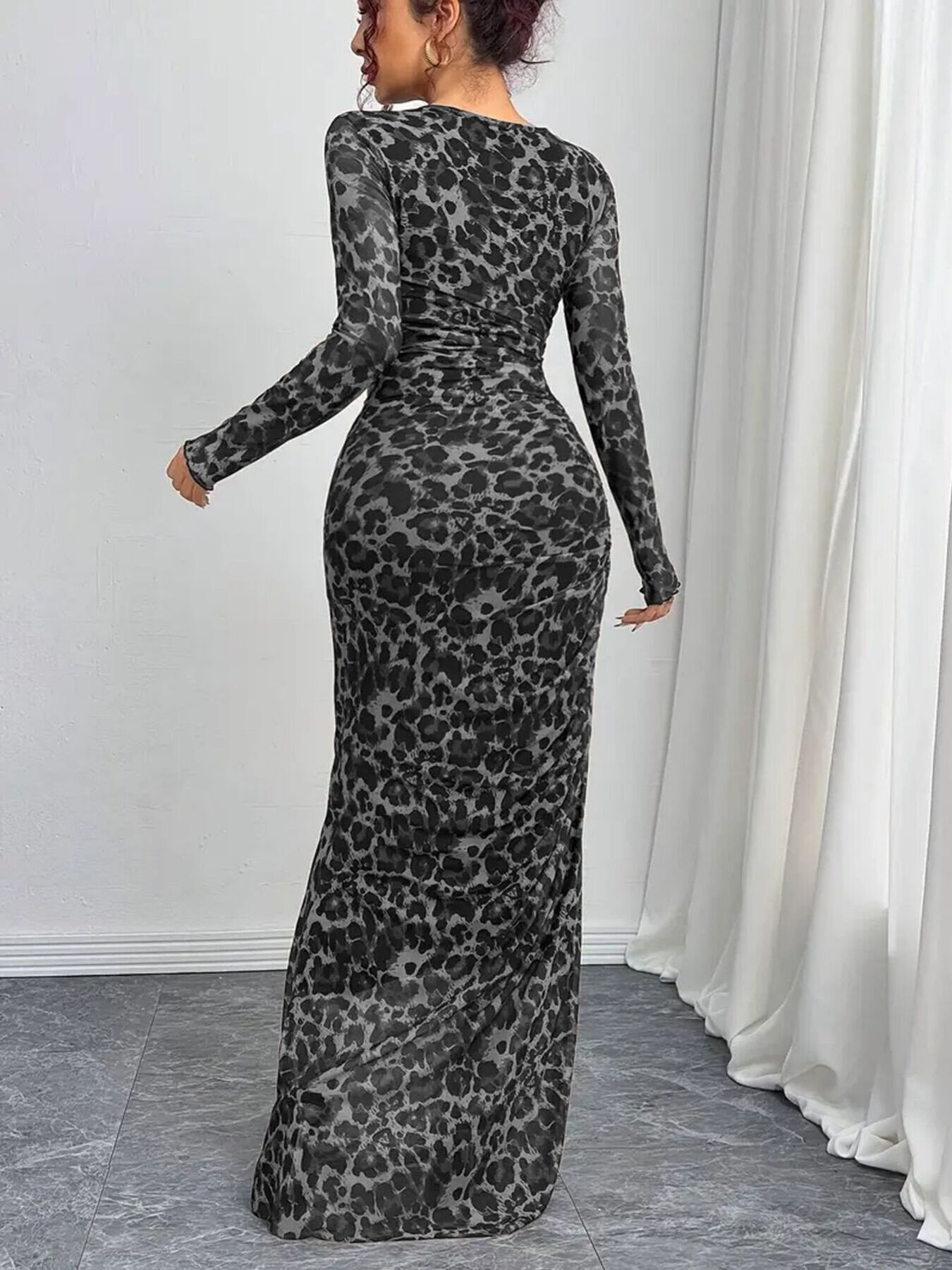 Leopard Ruched Bodycon Maxi Dress