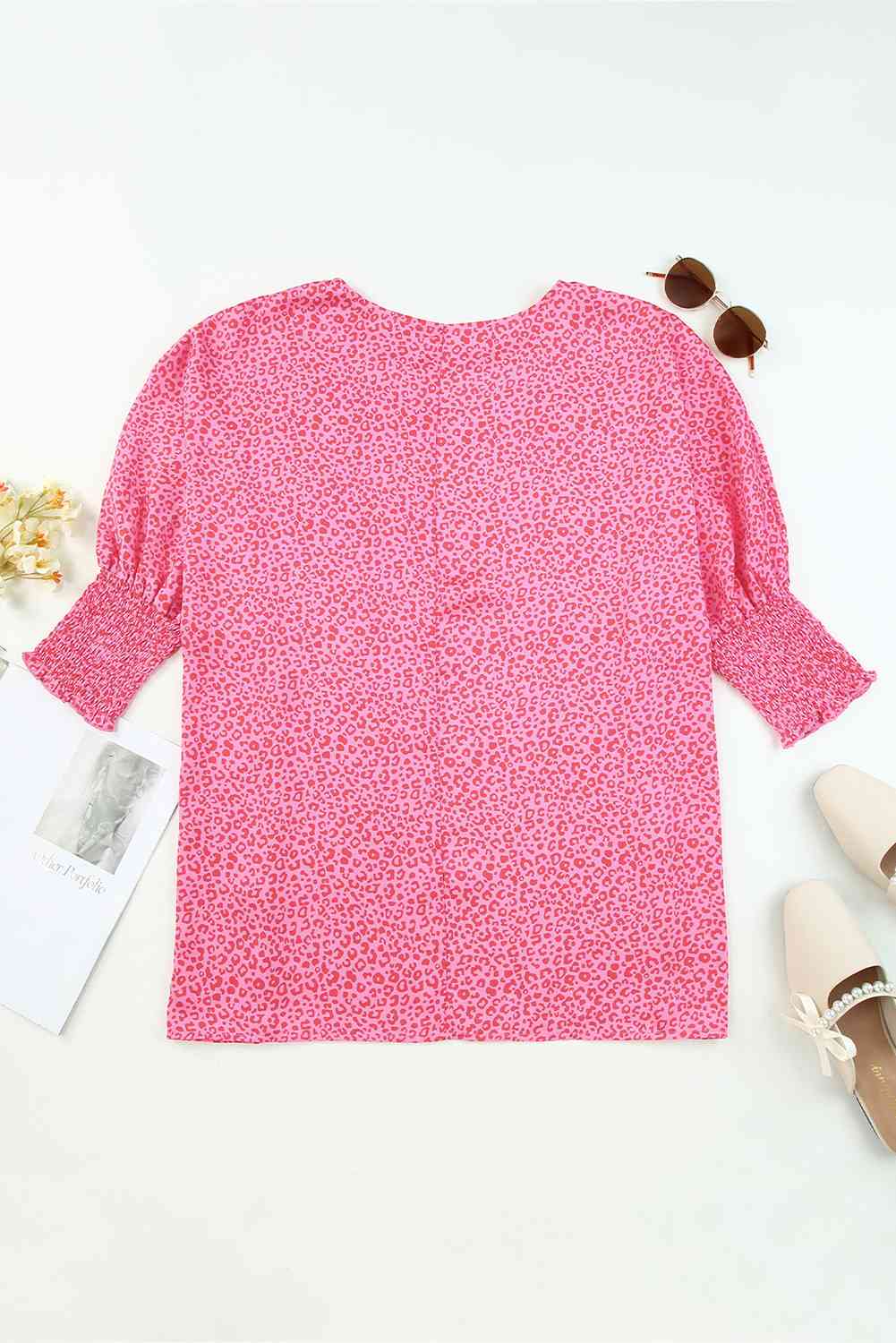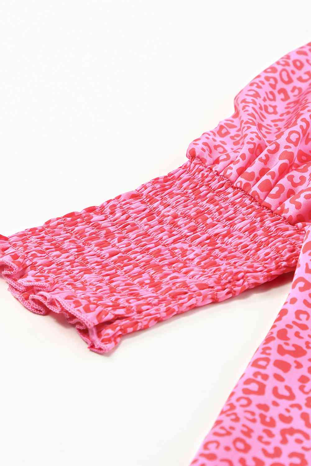 Leopard Smocked Flounce Sleeve Blouse