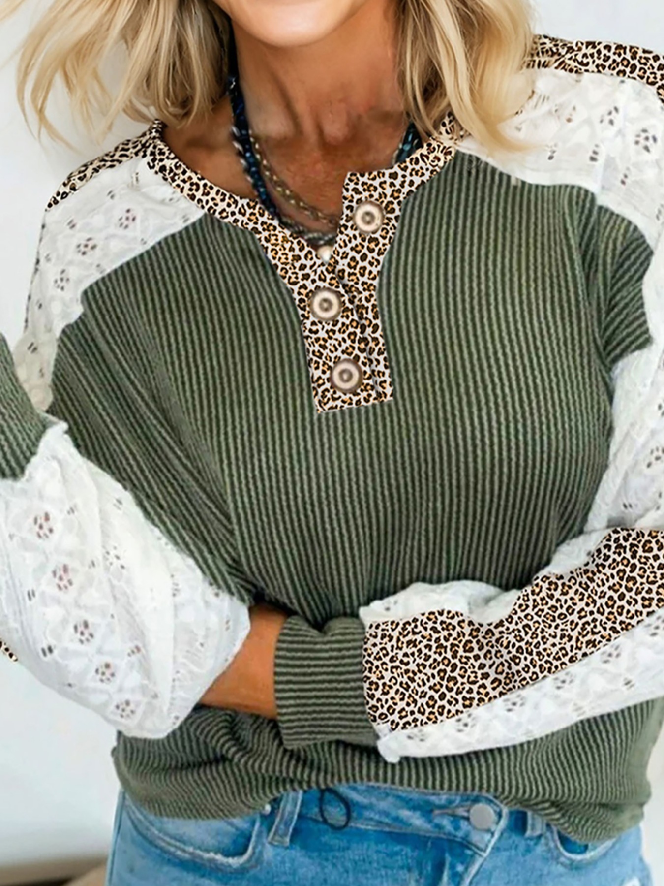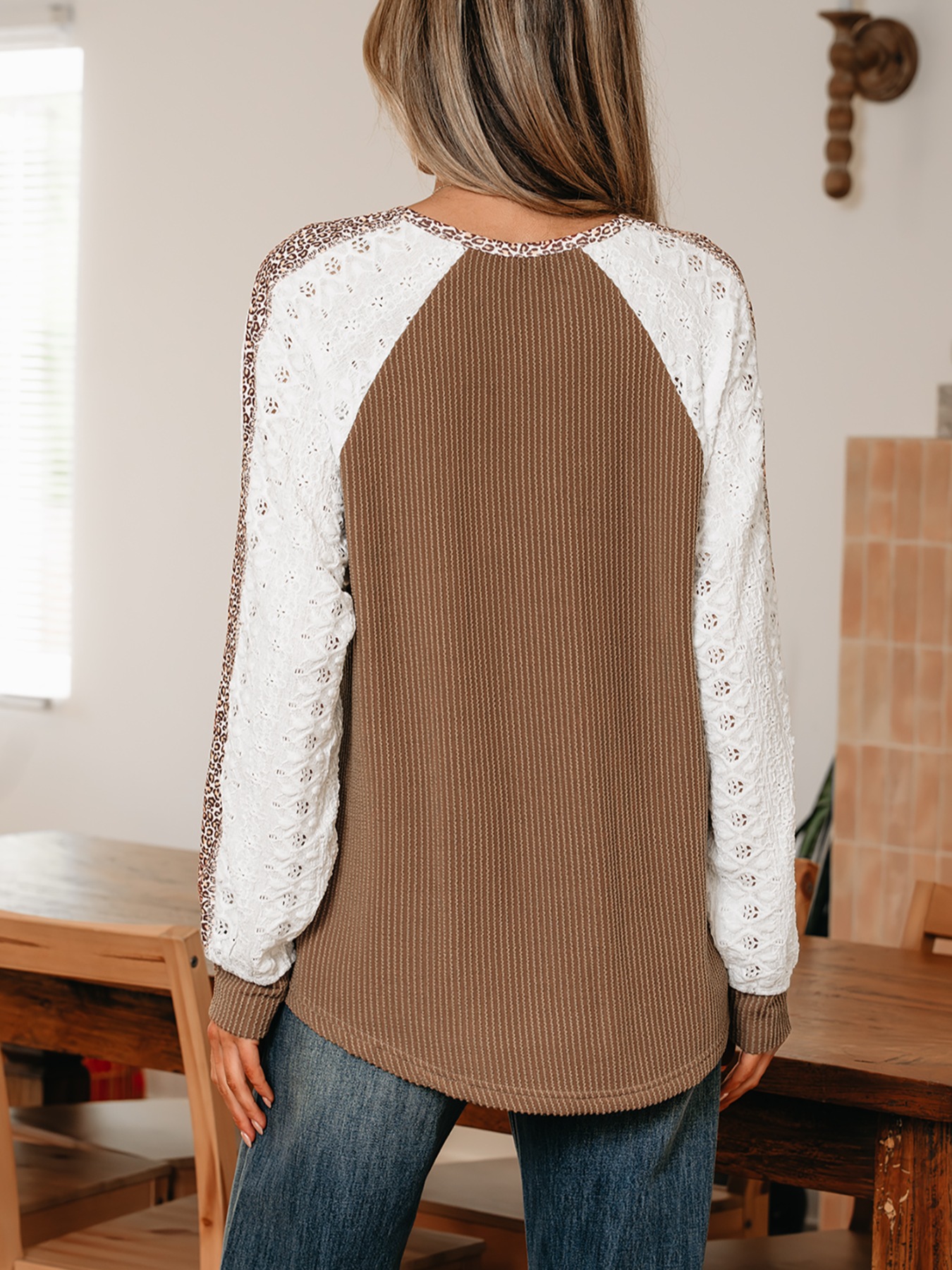 Leopard Trim Raglan Sleeve Top