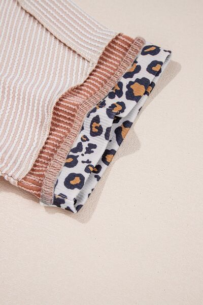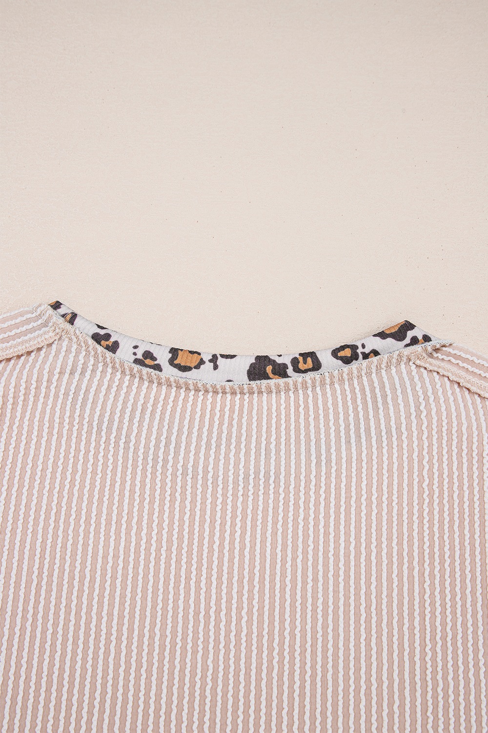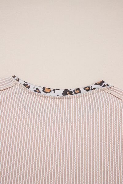 Leopard Trim Round Neck Ribbed T-Shirt