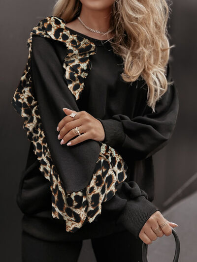 Leopard Trim Top and Pants Set