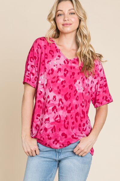 Leopard V-Neck Short Sleeve T-Shirt
