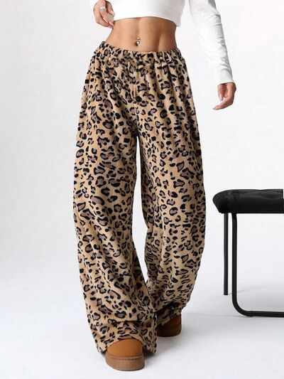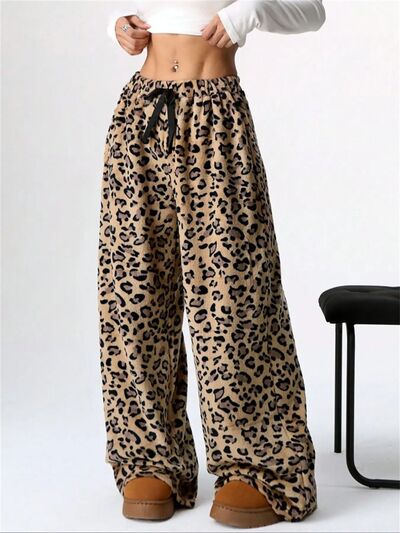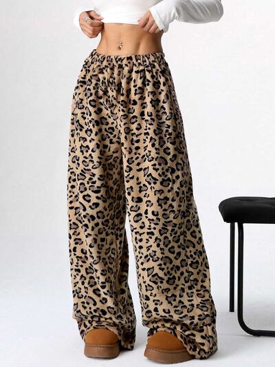 Leopard Wide Leg Plush Pants