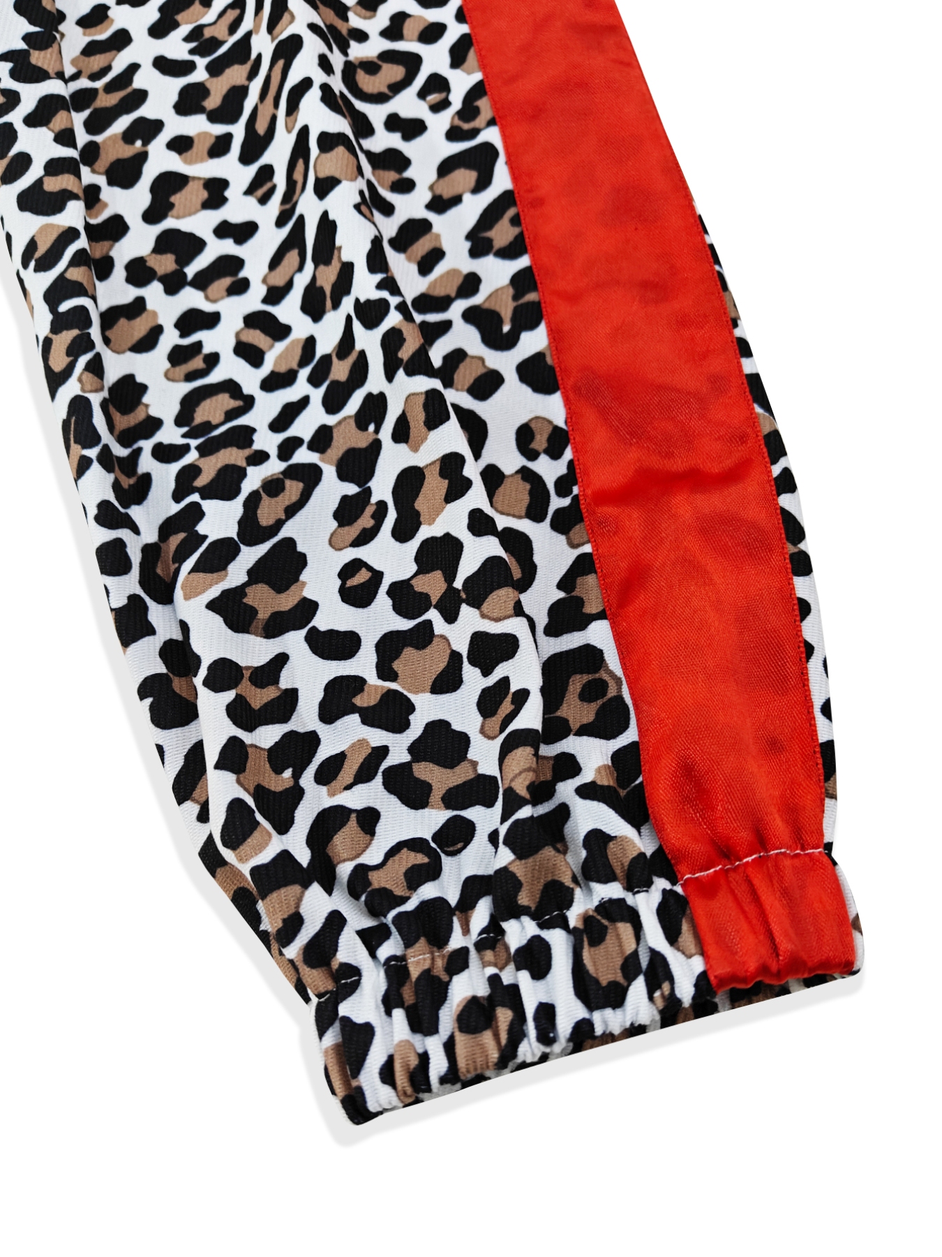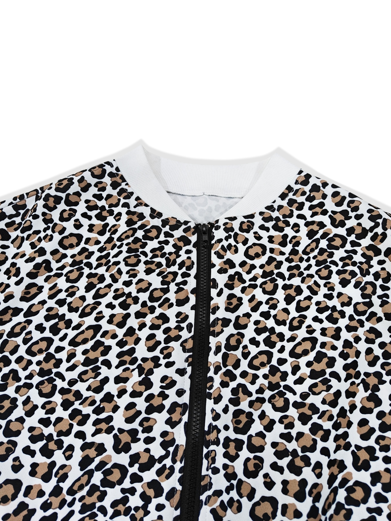 Leopard Zip Up Bomber Jacket with Contrast Side Stripes