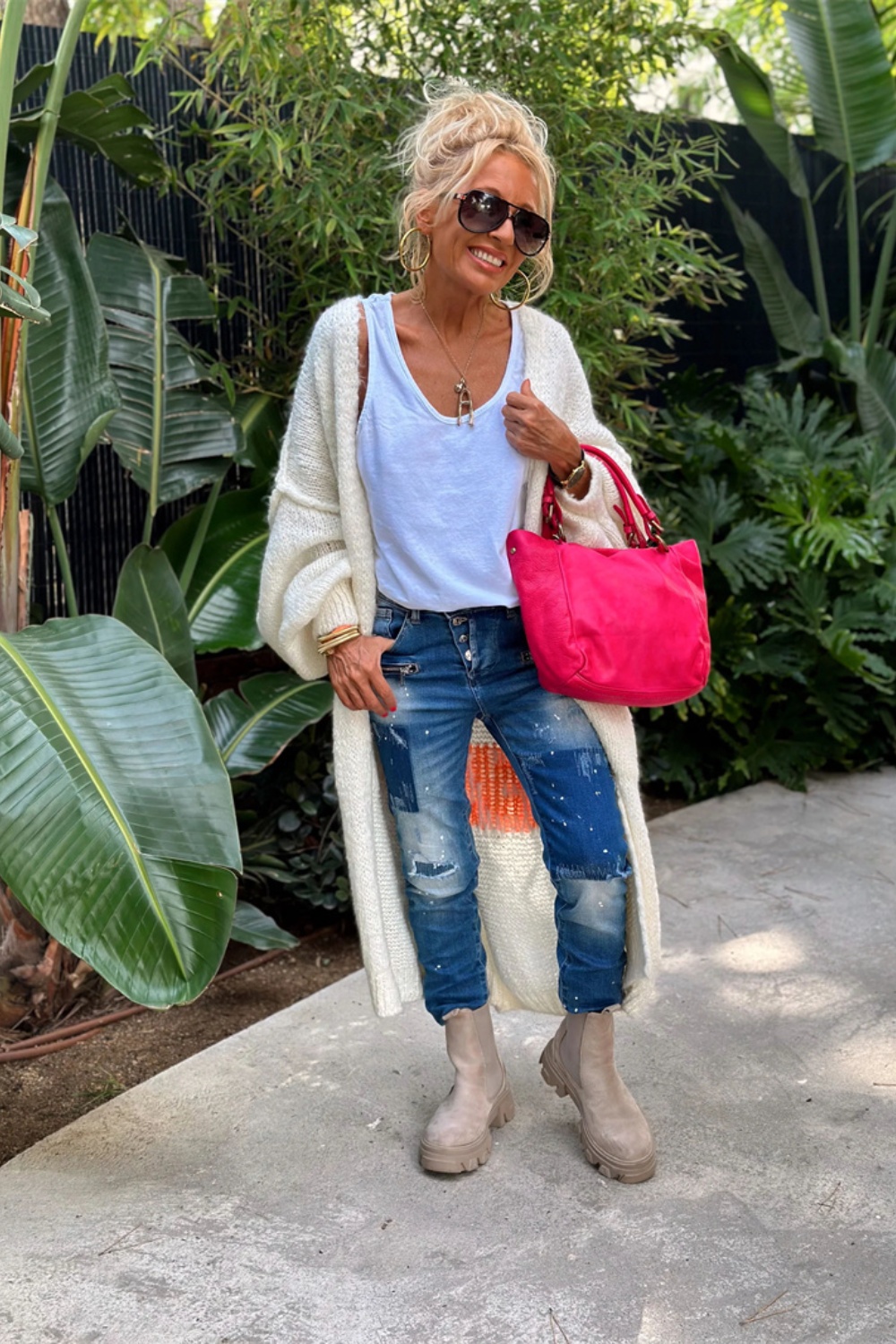 Letter Dropped Shoulder Long Sleeve Cardigan