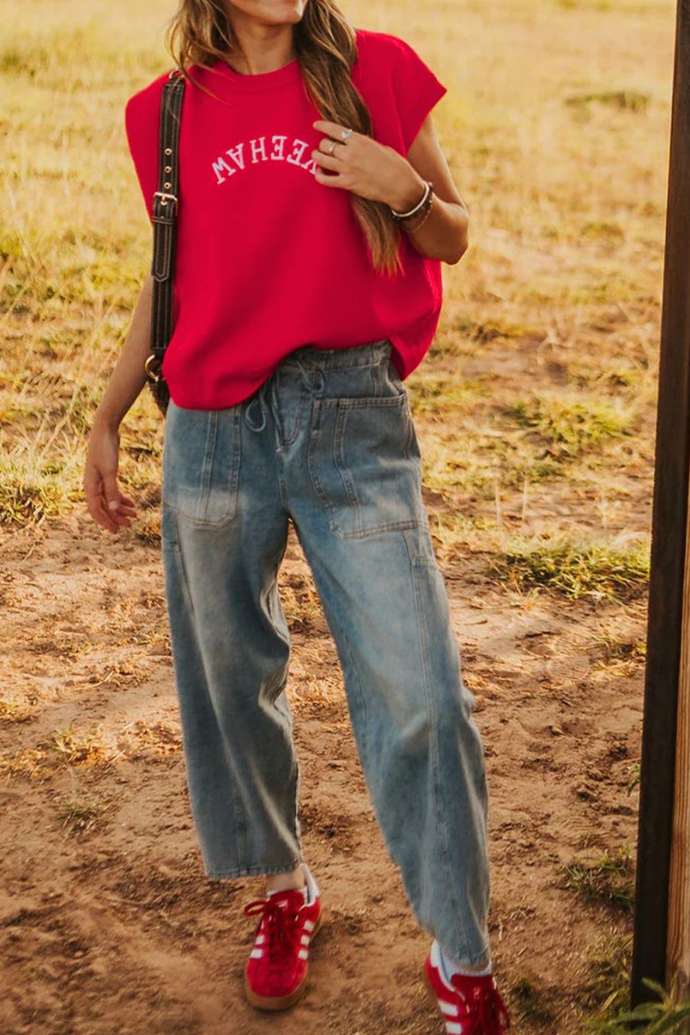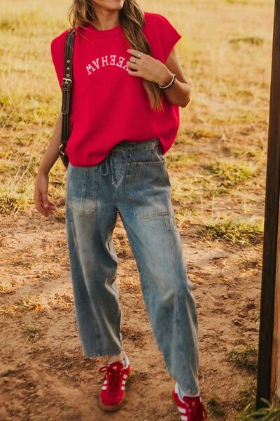 Letter Embroidered Sleeveless Knit Sweater Vest