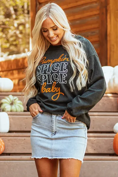 Letter Graphic Round Neck Long Sleeve Sweatshirt