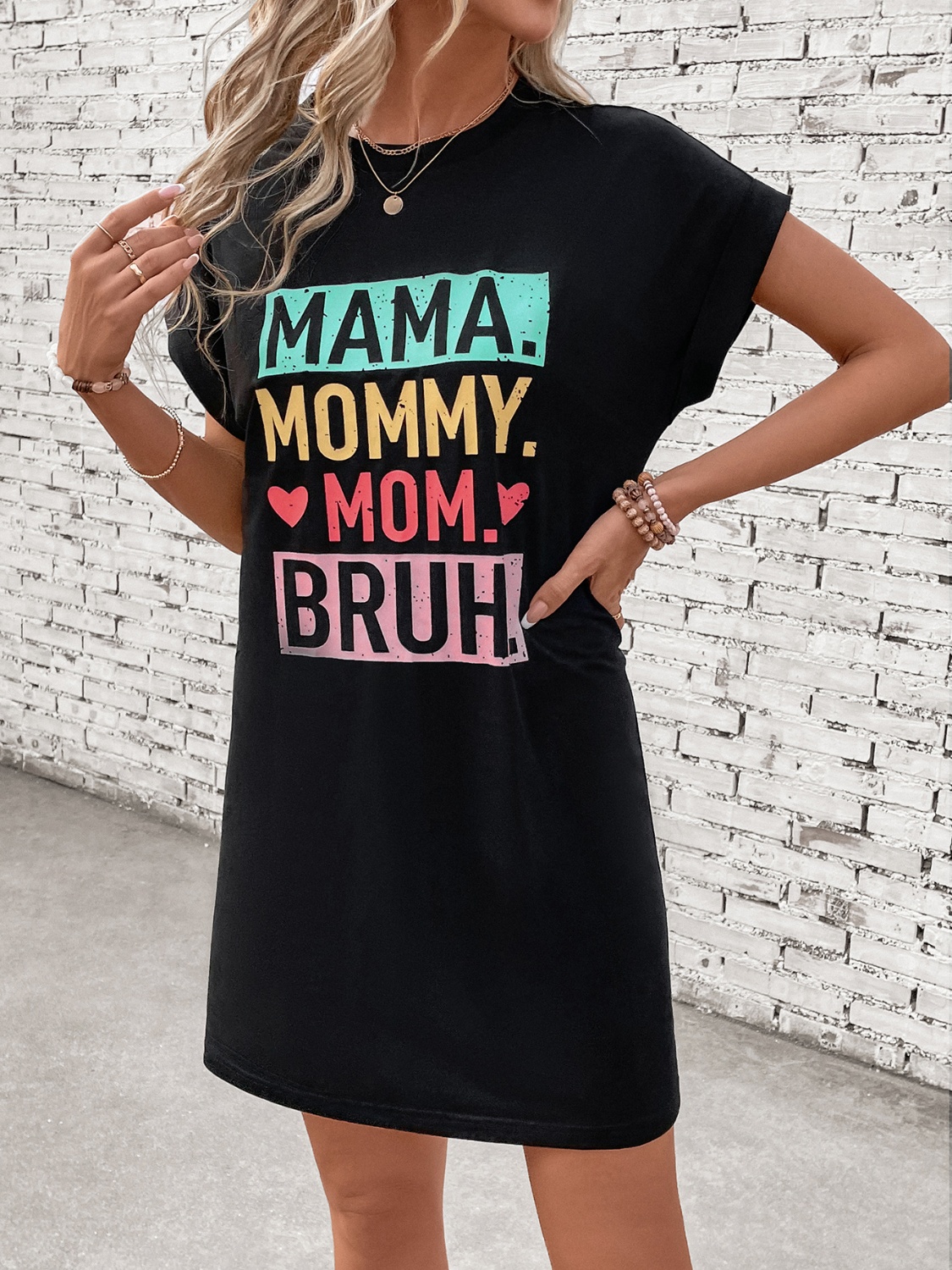 Letter Graphic Short Sleeve Mini Tee Dress