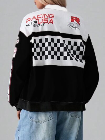 Letter Zip Up Dropped Shoulder Jacket