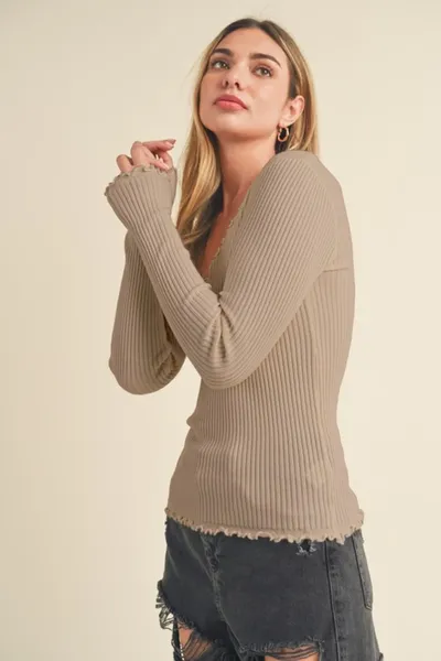 Lettuce Hem Scoop Neck Long Sleeve Knit Top