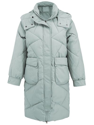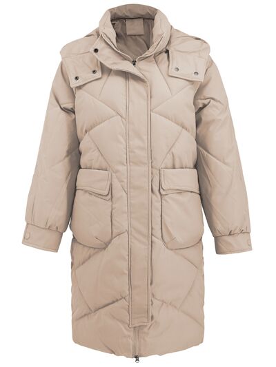Long Sleeve Longline Hooded Winter Coat with Pockets
