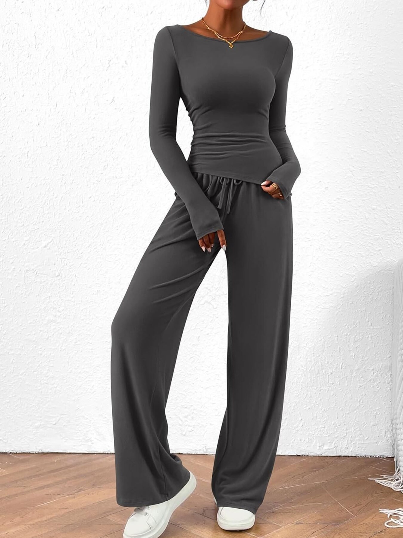 Long Sleeve Top and Wide Leg Pants Set