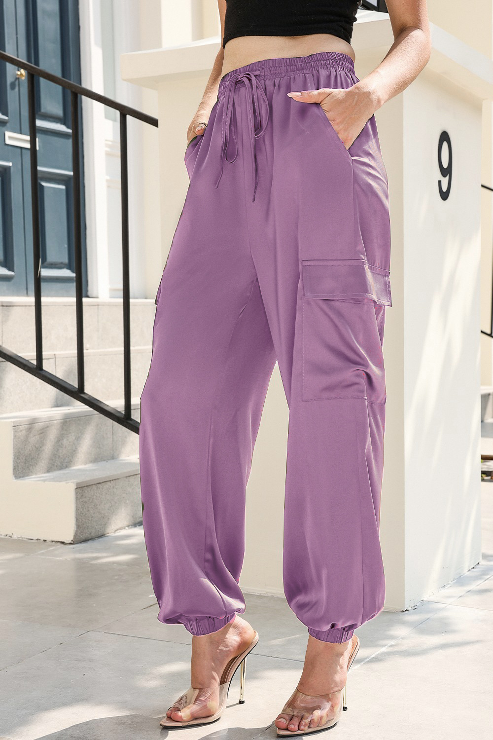 Long Tie Waist Pocketed Pants