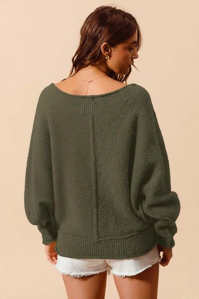 Loose Fit Exposed Seam Slouchy Boucle Sweater