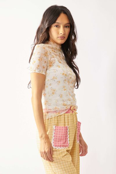 Loose Turtle Neck Lace Mesh Lace Sheer Top