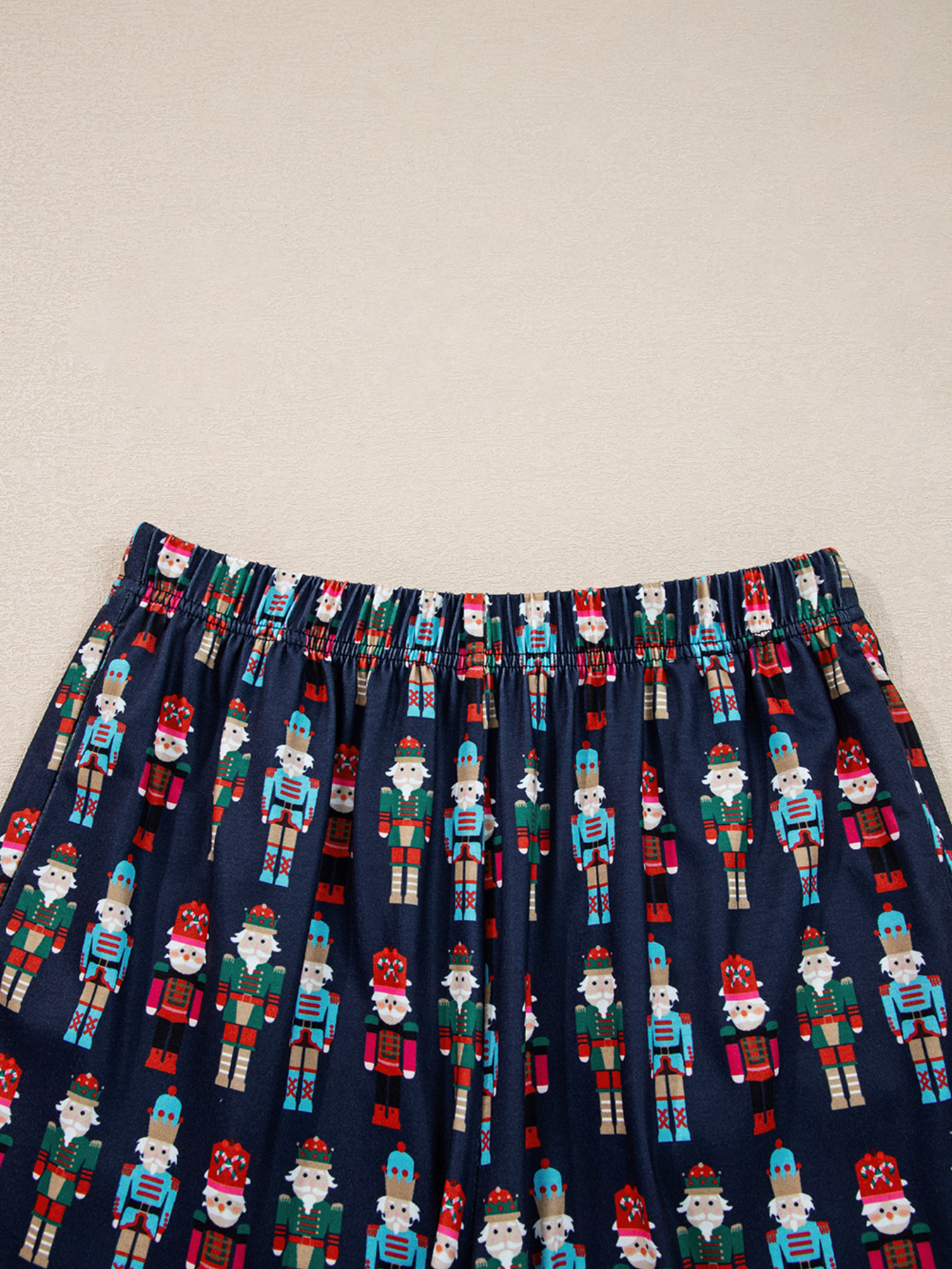 Mama Claus Plaid Letter Tee and Nutcracker Shorts 2pcs Lounge Set
