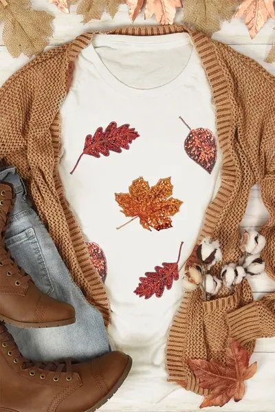 Maple Leaf Round Neck Short Sleeve T-Shirt