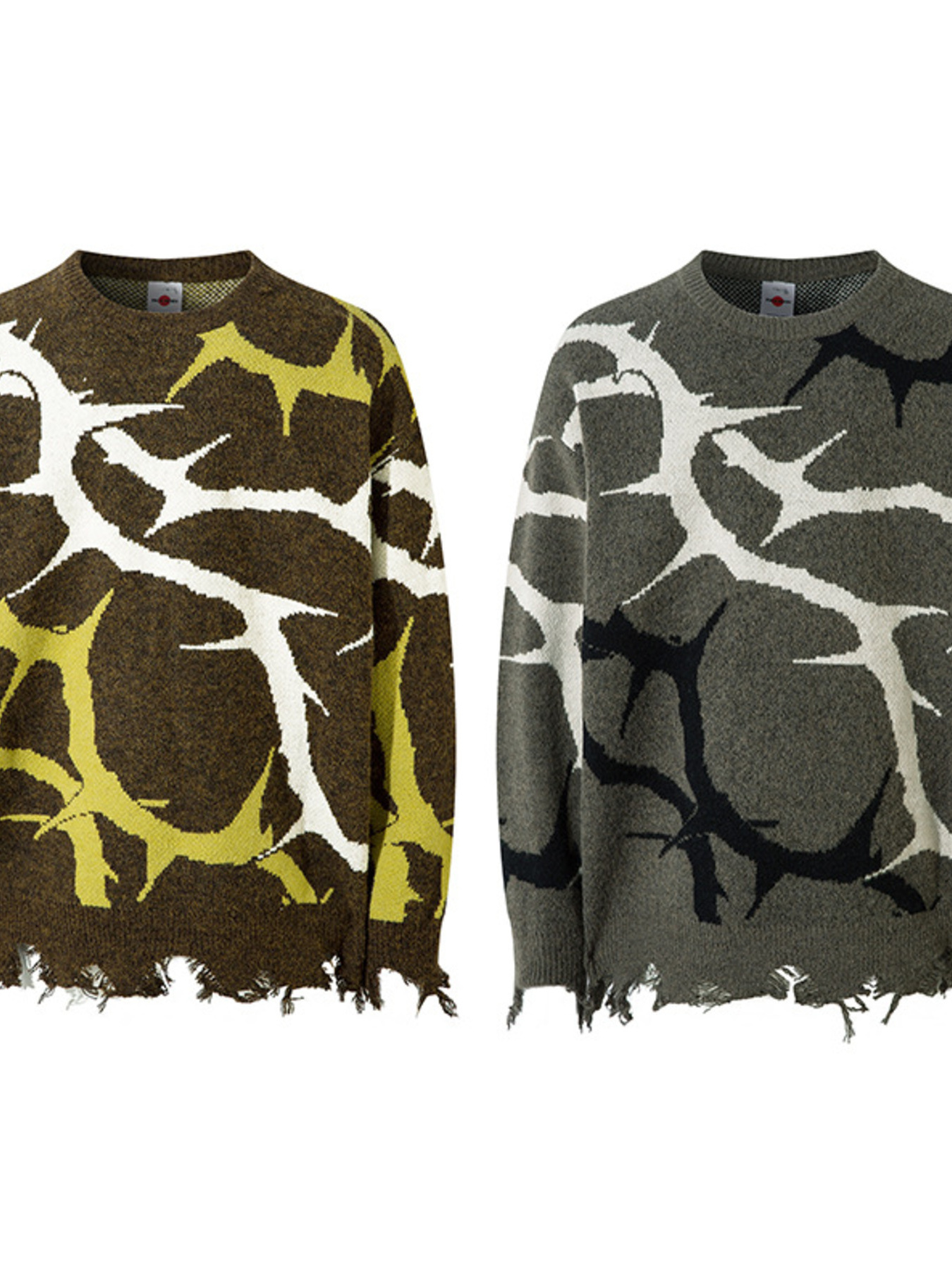 Men's Abstract Pattern Distressed Hem Sweater