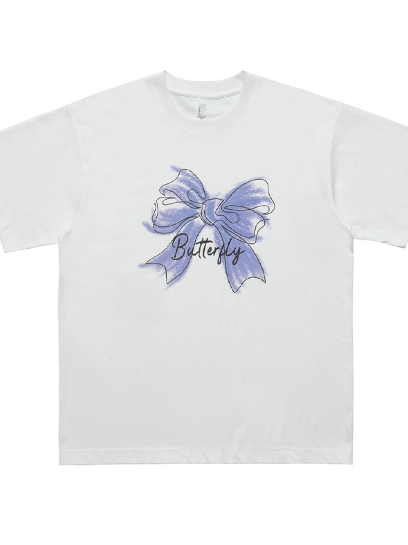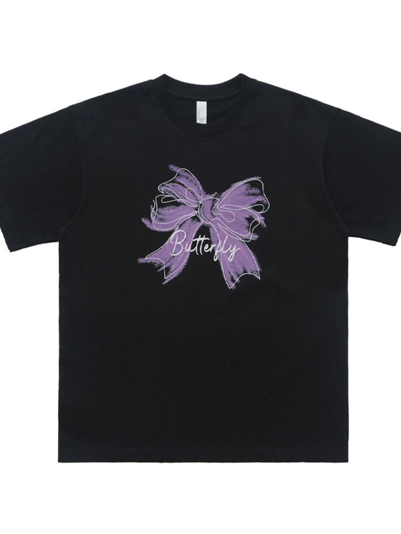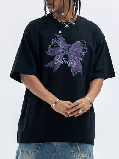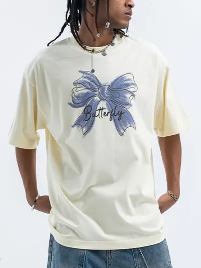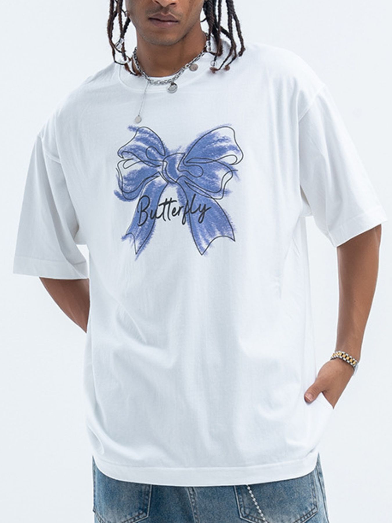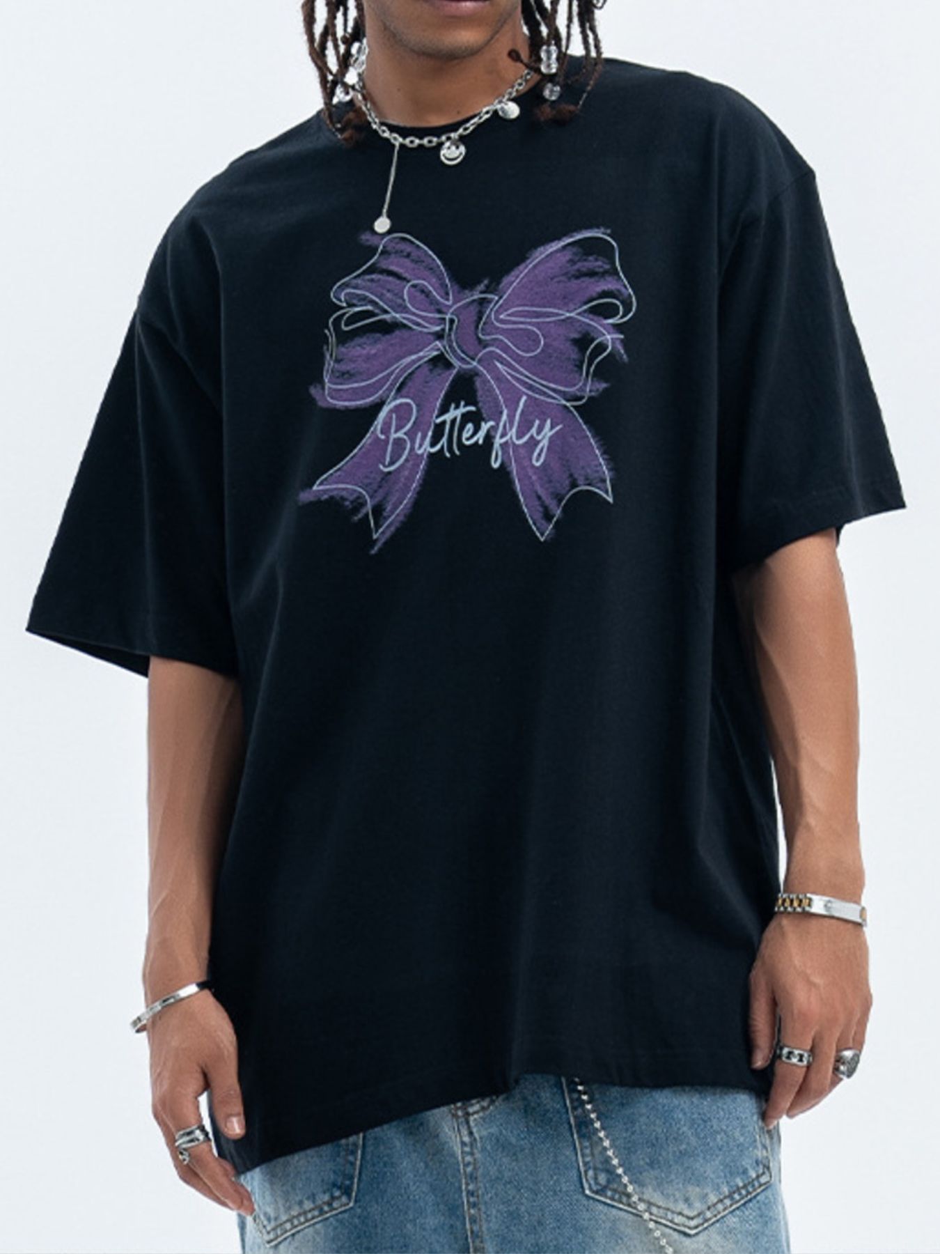 Men's Bow Butterfly Round Neck Short Sleeve T-Shirt