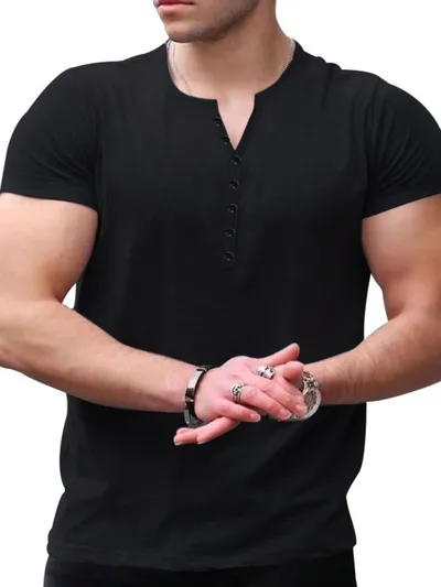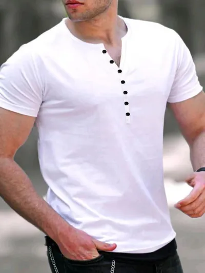 Men's Button Detail Short Sleeve Top