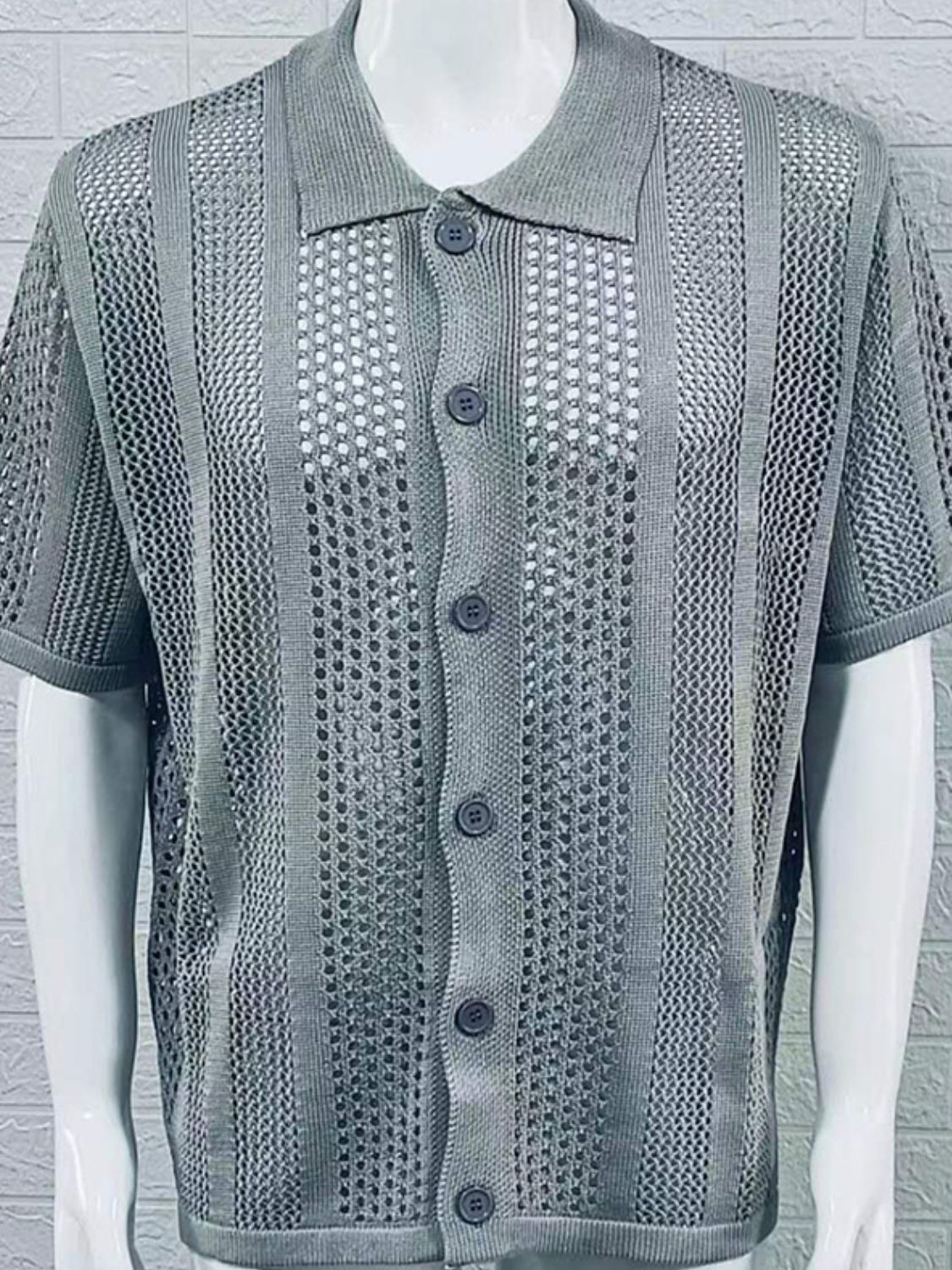 Men's Button Down Collared Neck Hollow Out Shirt