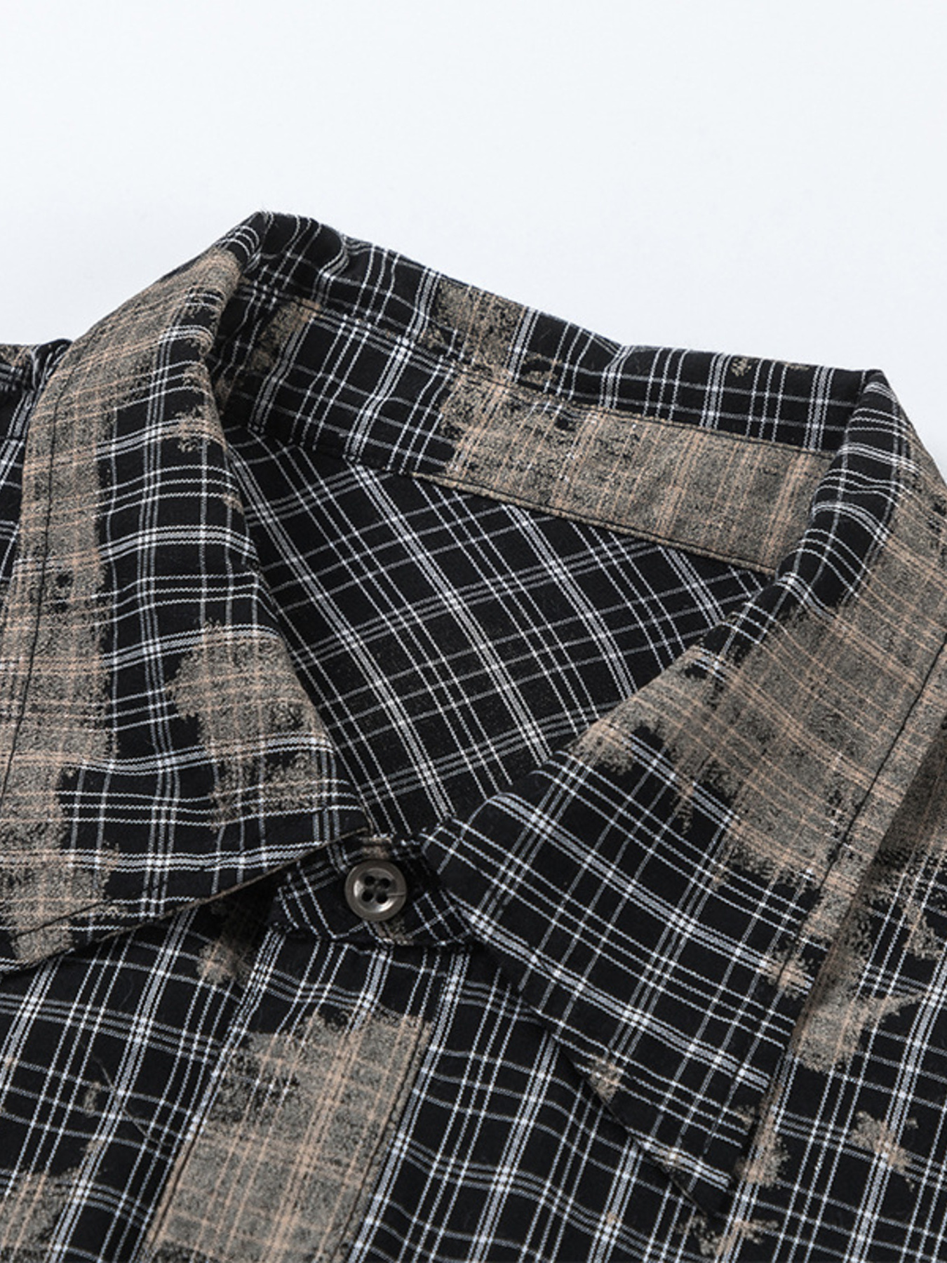 Men's Button Down Distressed Plaid Shirt