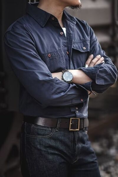 Men's Button Down Long Sleeve Shirt with Chest Pockets