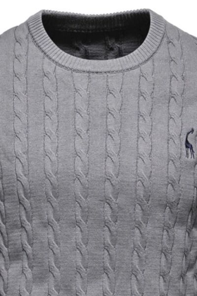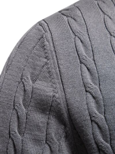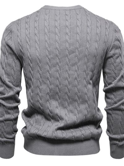 Men's Cable-Knit Round Neck Long Sleeve Sweater