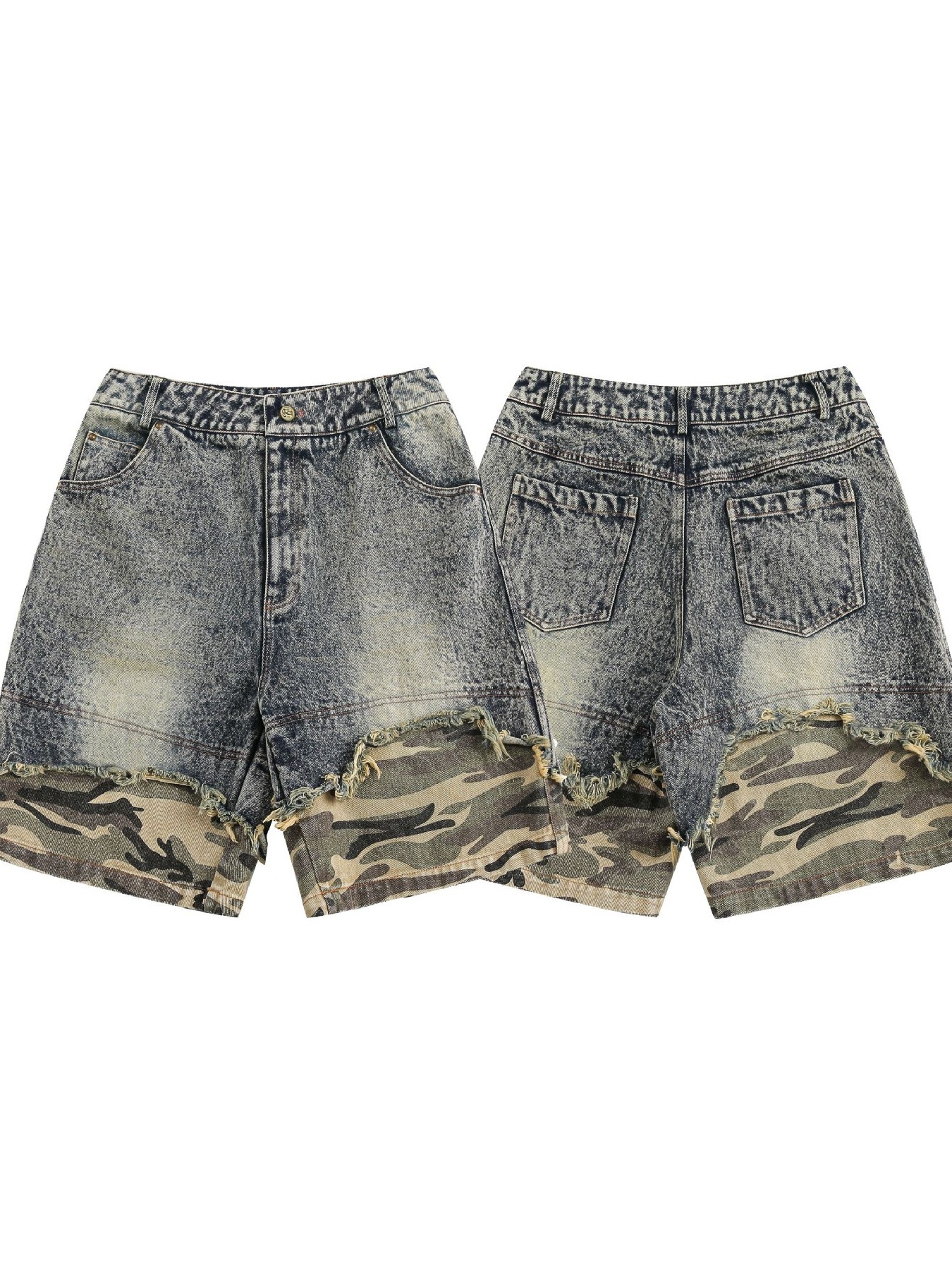 Men's Camouflage Patchwork Denim Shorts