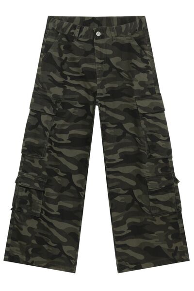 Men's Camouflage Wide Leg Jeans with Cargo Pockets