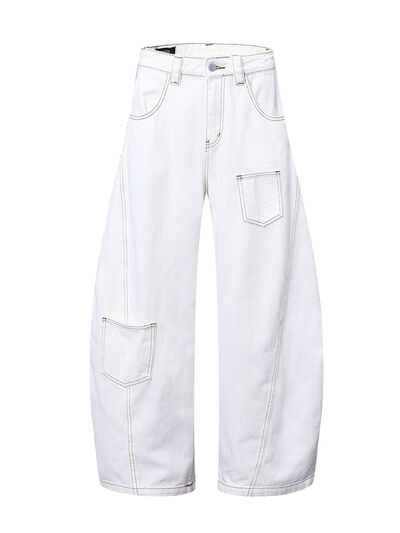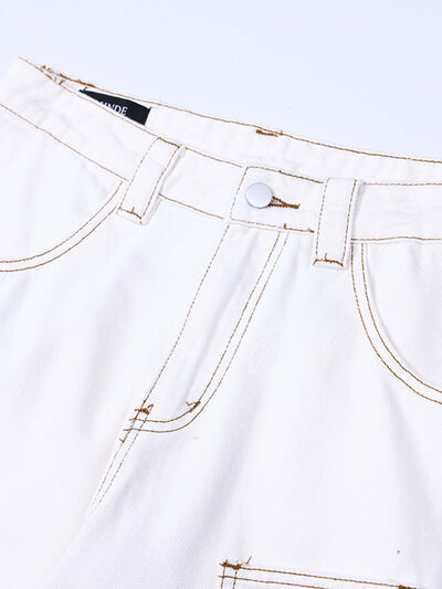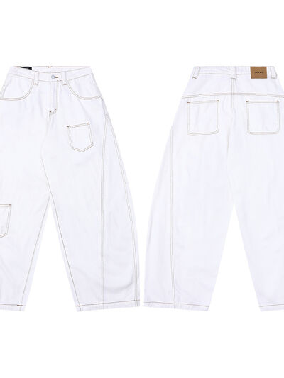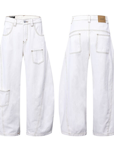 Men's Cargo Curved Jeans with Contrast Stitching