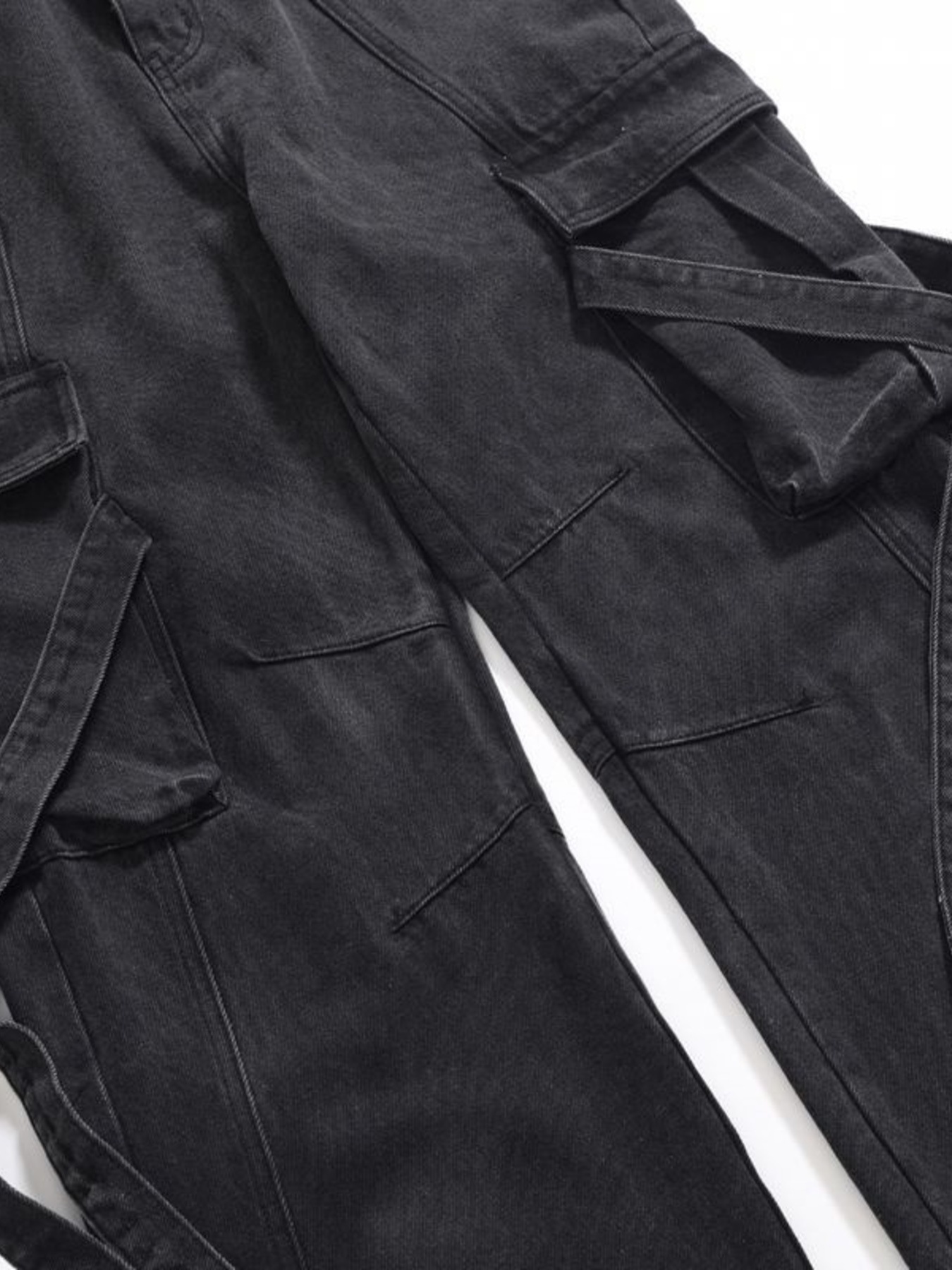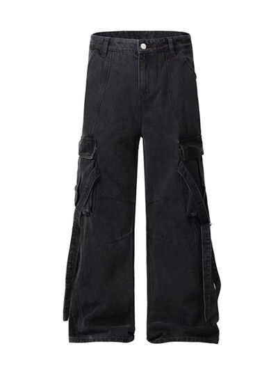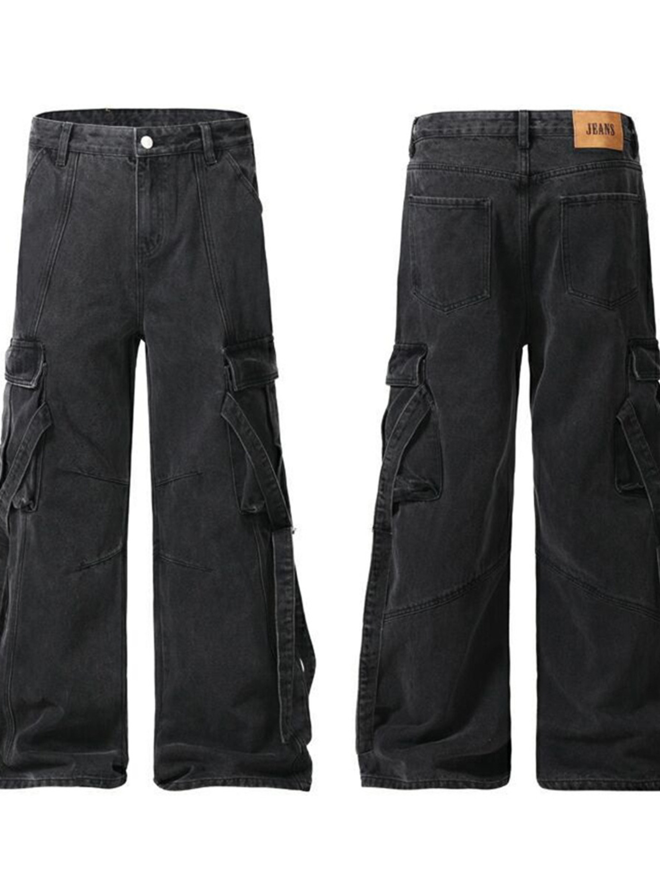 Men's Cargo Wide Leg Jeans with Multiple Pockets