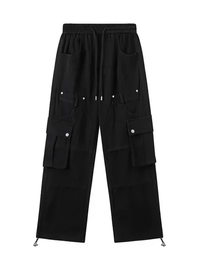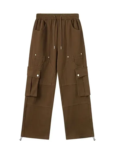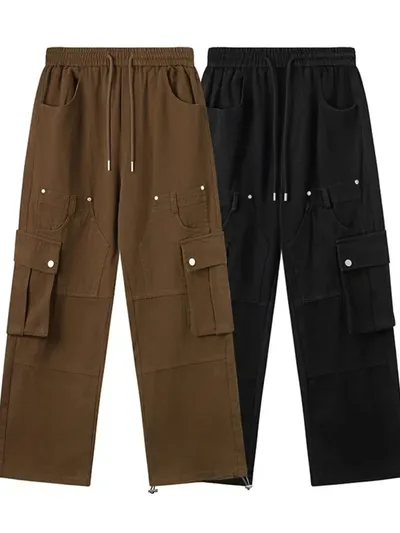Men's Casual Cargo Drawstring Pants with Multi-Pockets