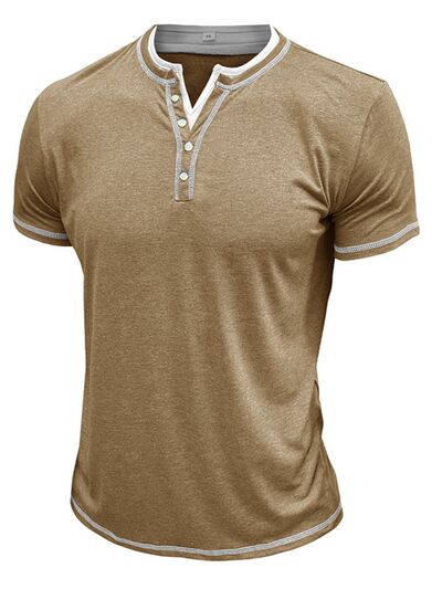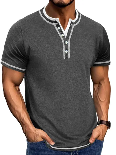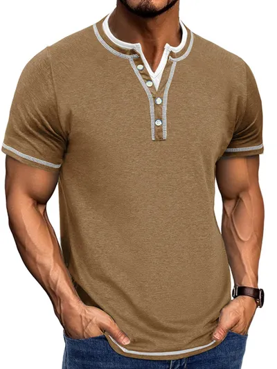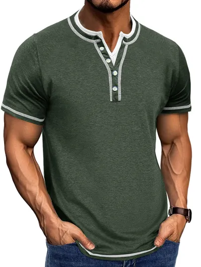 Men's Casual Henley Polo Shirt with Contrast Trim