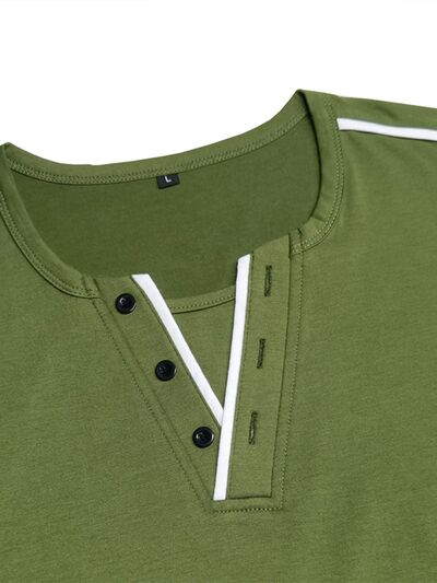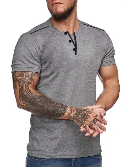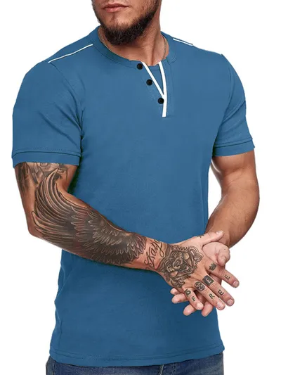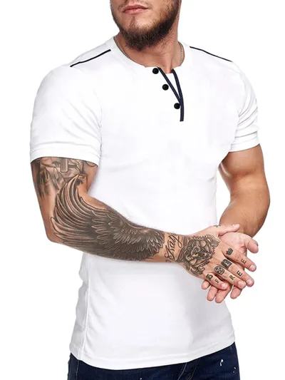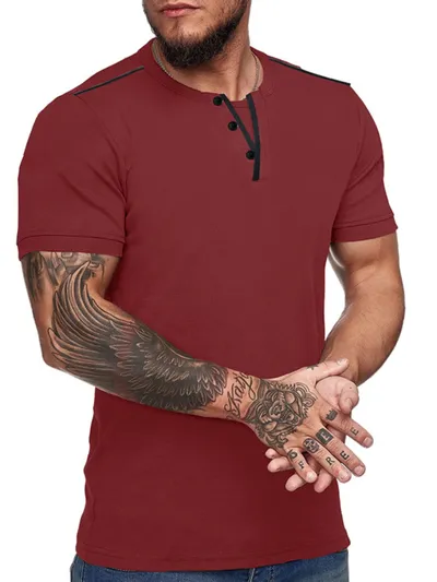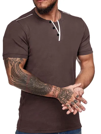 Men's Casual Henley Short Sleeve T-Shirt with Contrast Trim