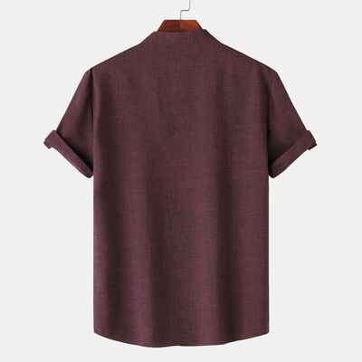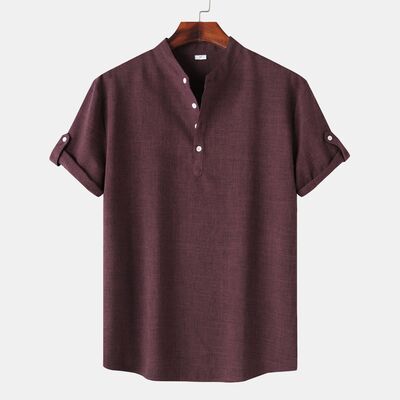 Men's Casual Mandarin Collar Short Sleeve Henley Shirt