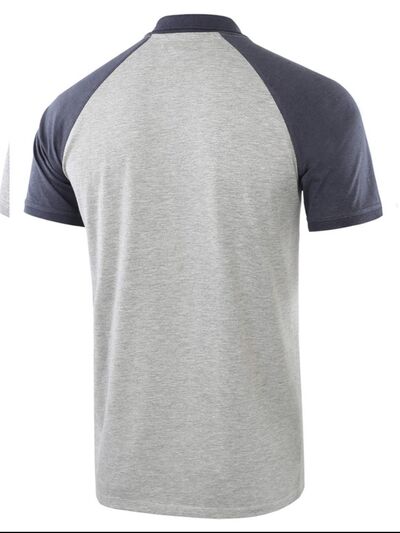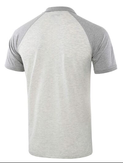 Men's Casual Raglan Sleeve Two-Tone Polo Shirt